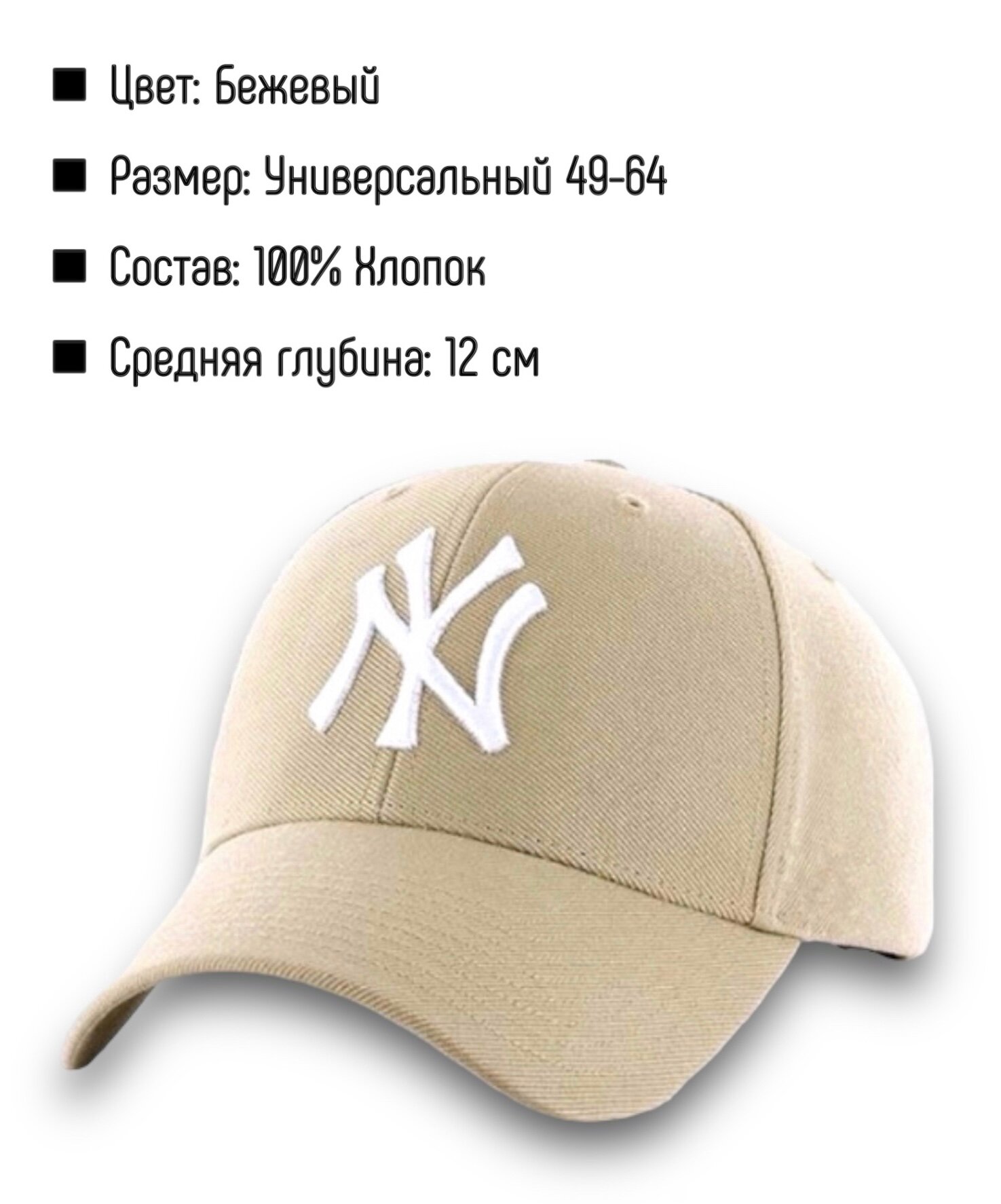 Универсальная Бейсболка/Кепка/NY/Бежевая/белая интересное: