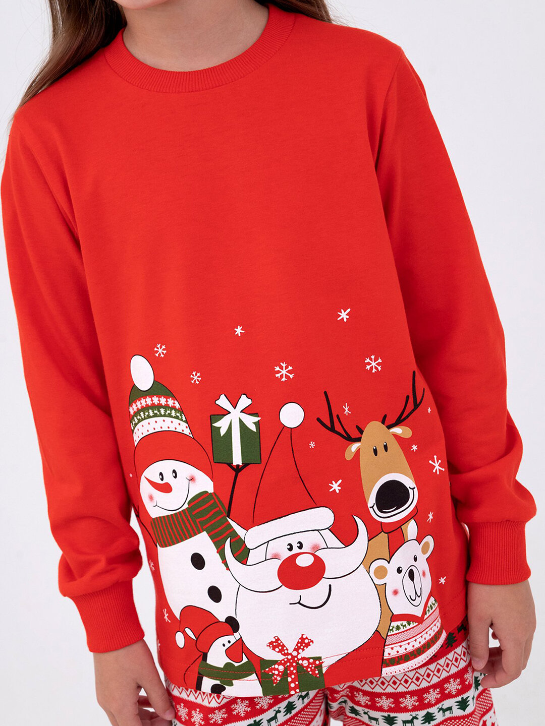 Пижама с брюками детская новогодняя HappyFox. HFLUNNG810 размер 140. цвет снеговик.красный