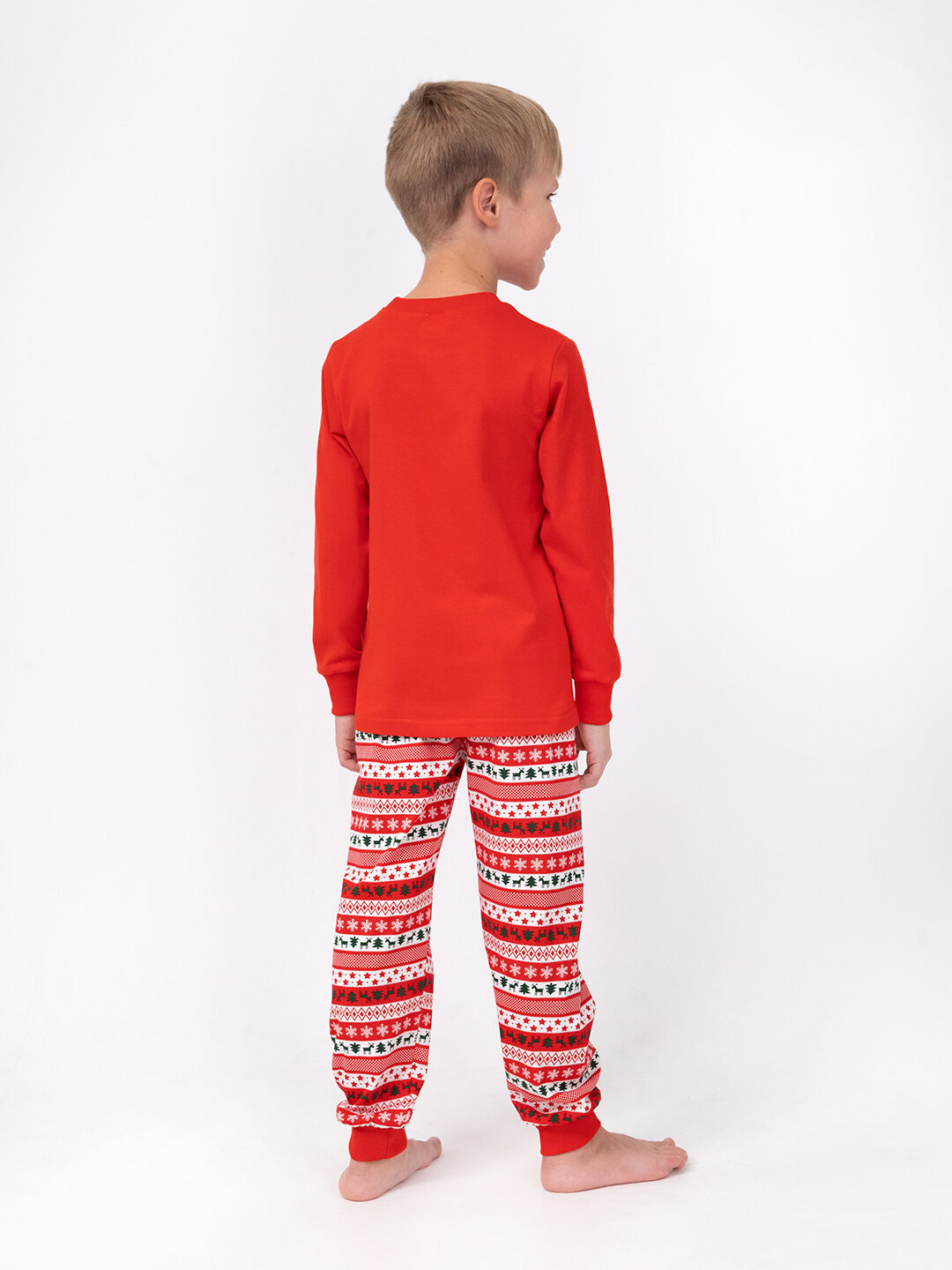 Пижама с брюками детская новогодняя HappyFox. HFLUNNG810 размер 134. цвет снеговик.красный