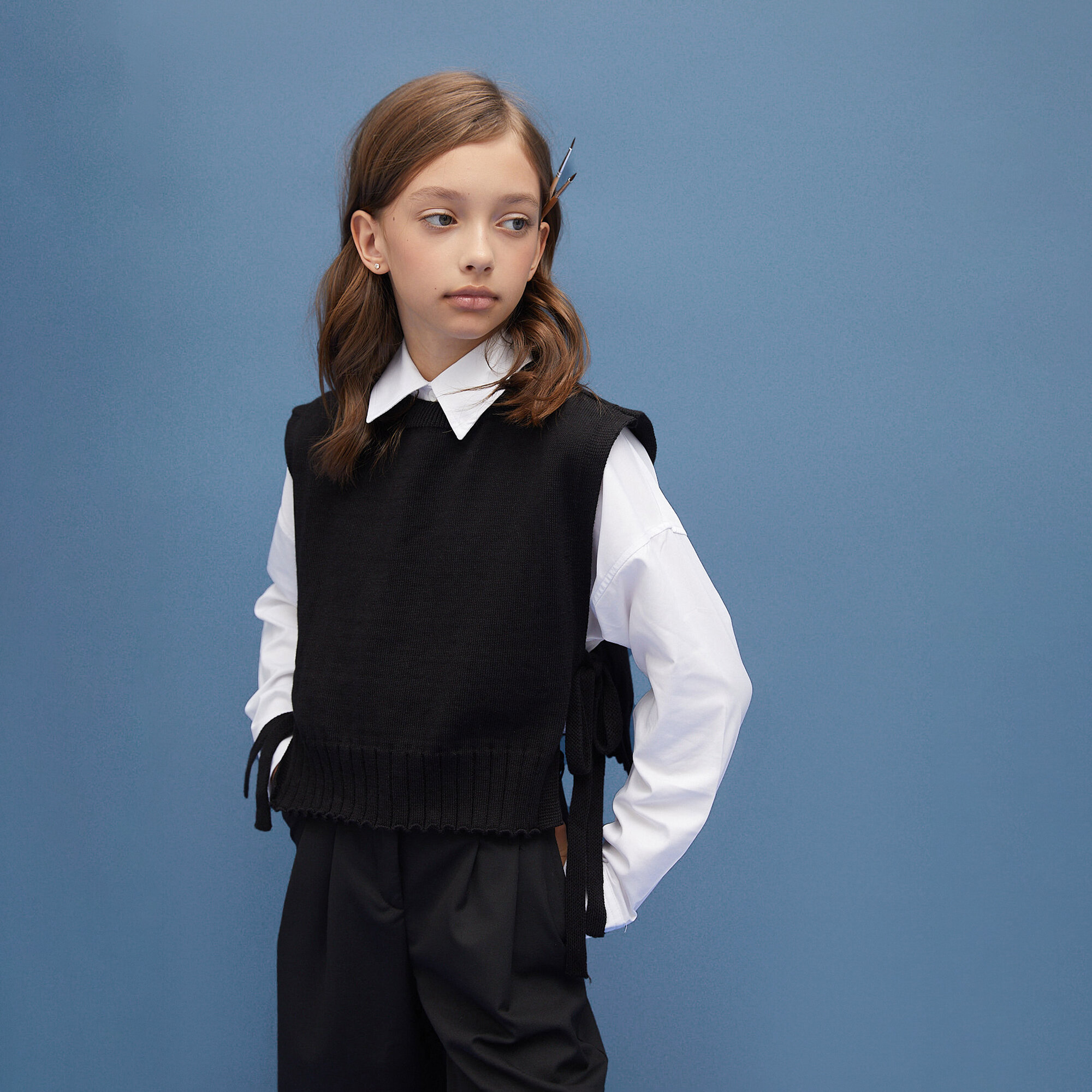 Жилет вязаный детский Amarobaby BOW, цвет черный, размер 146