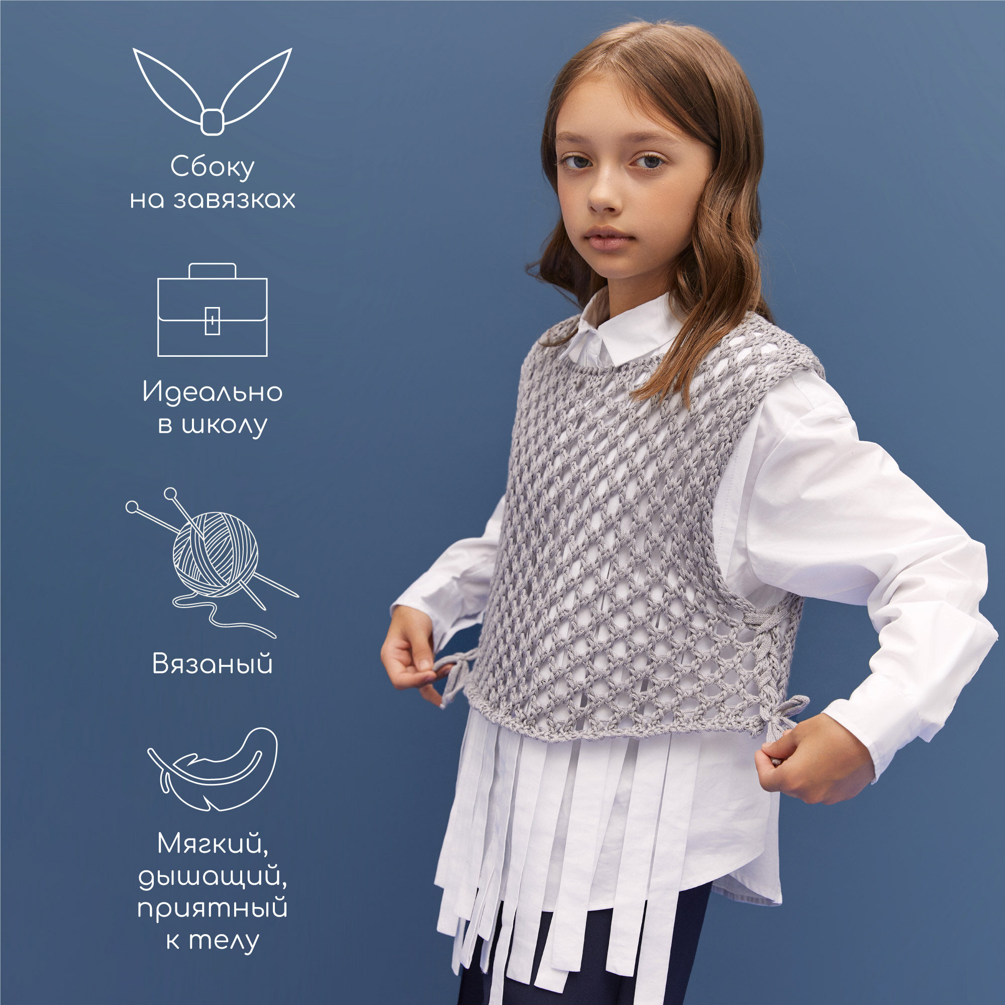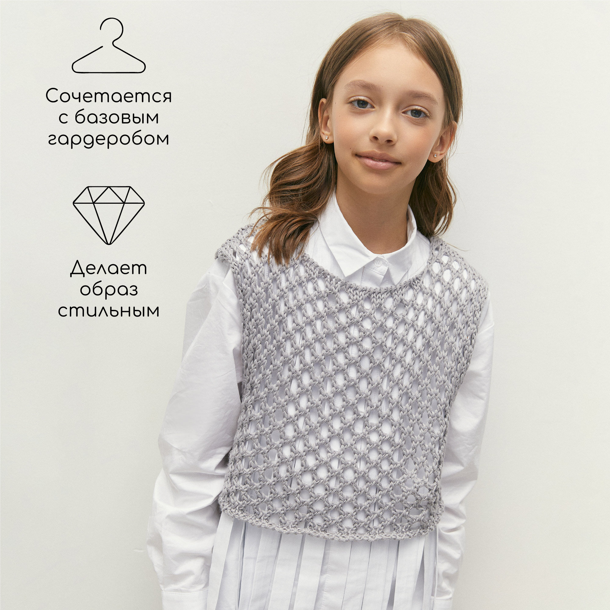 Жилет вязаный сетка детский Amarobaby MESH, цвет серый, размер 134