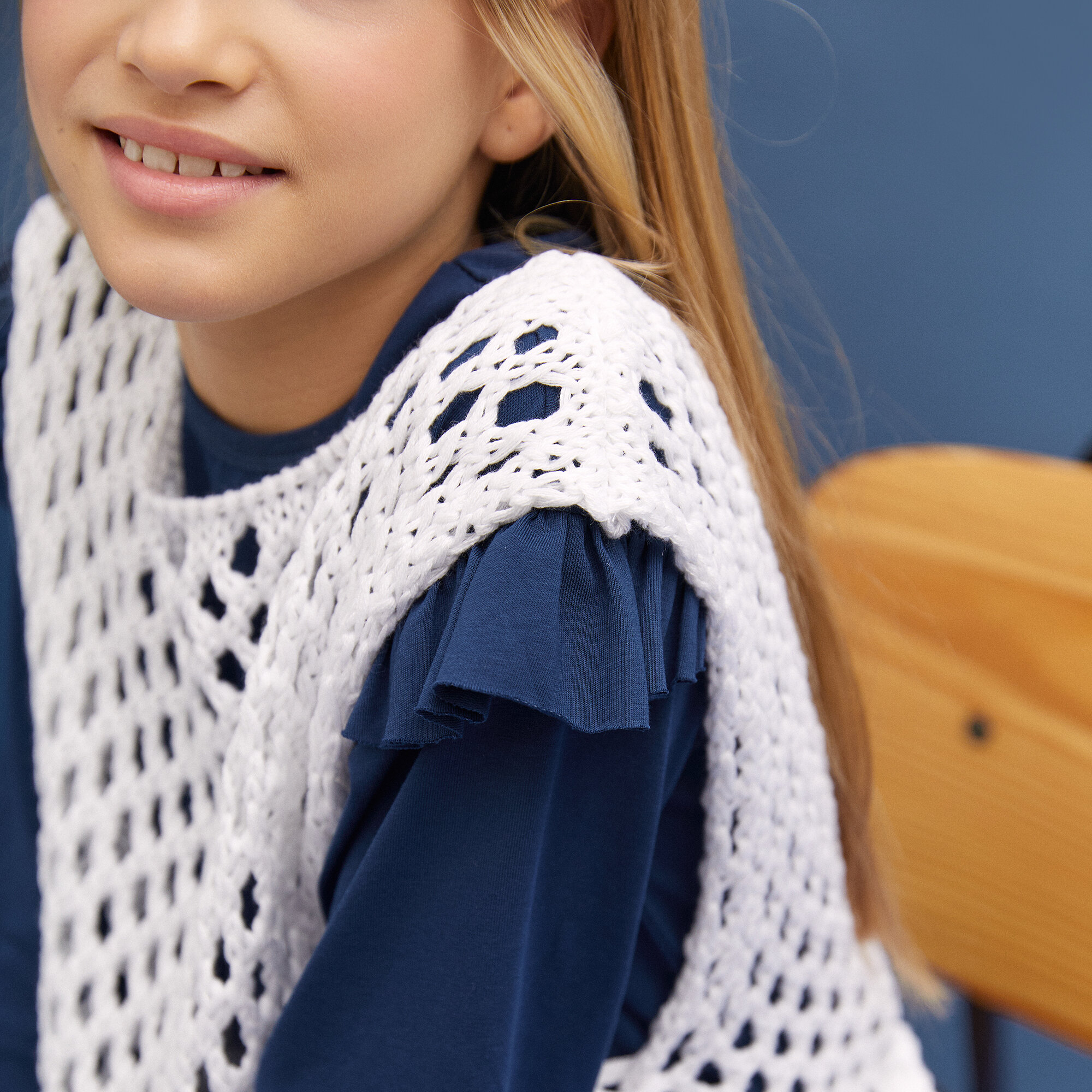 СохранитьЖилет вязаный сетка детский Amarobaby MESH, цвет белый, размер 128 интересное:
