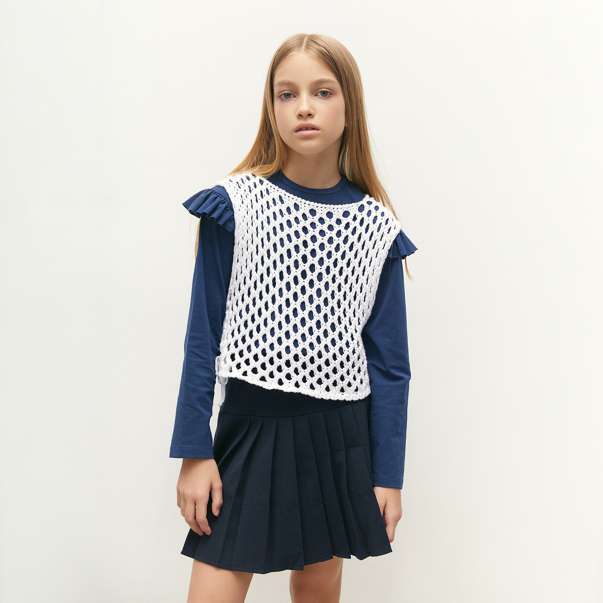 Жилет вязаный сетка детский Amarobaby MESH, цвет белый, размер 134