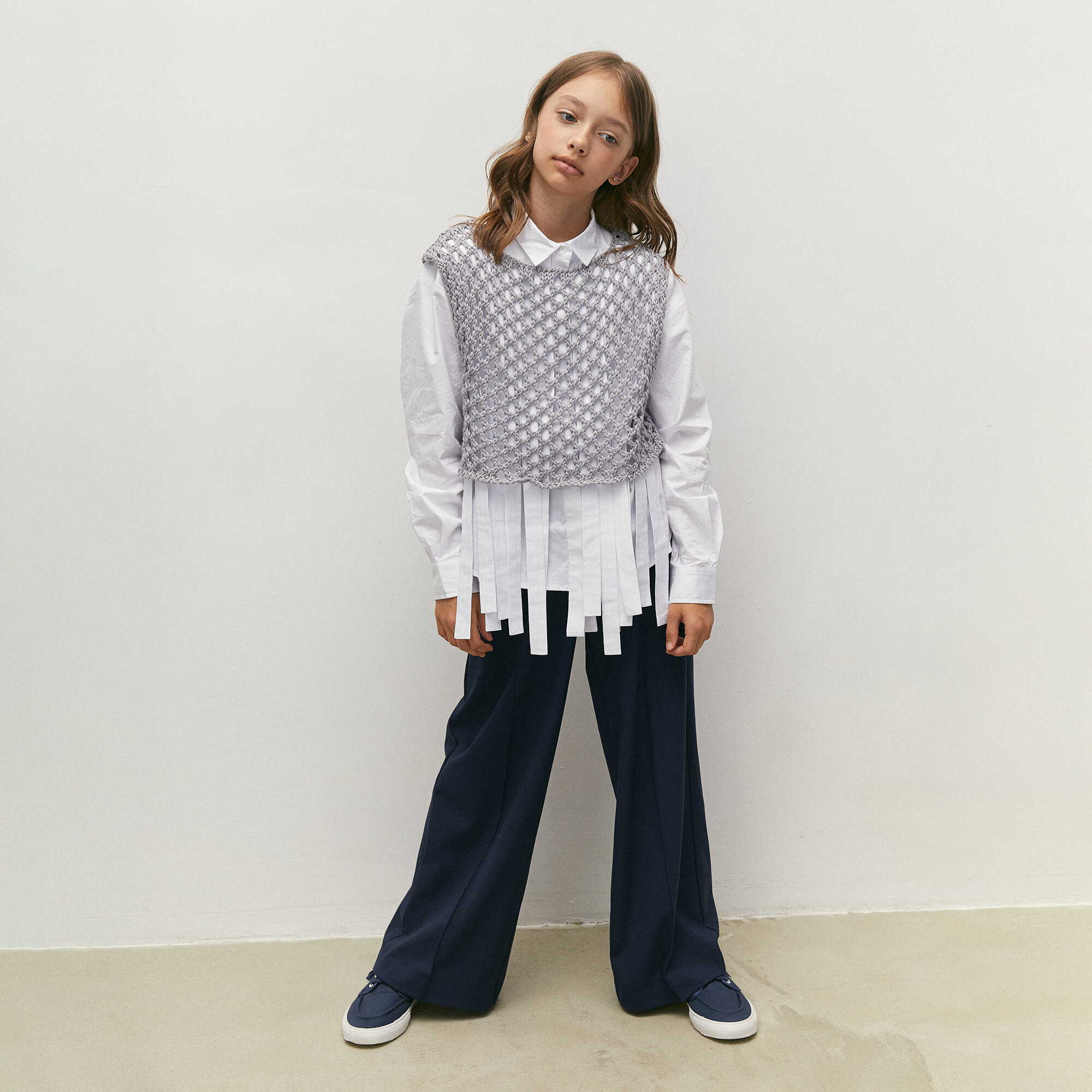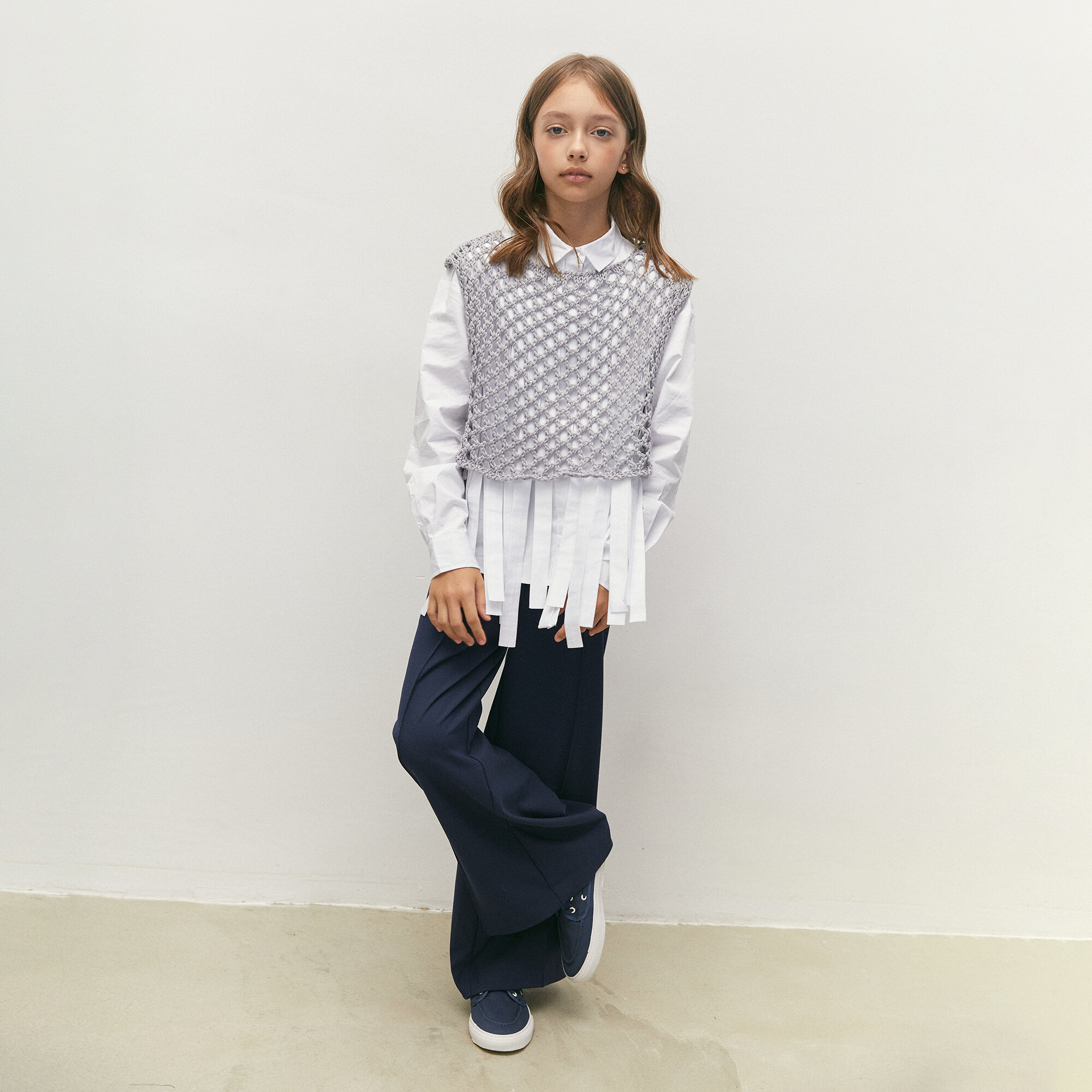 Жилет вязаный сетка детский Amarobaby MESH, цвет белый, размер 134