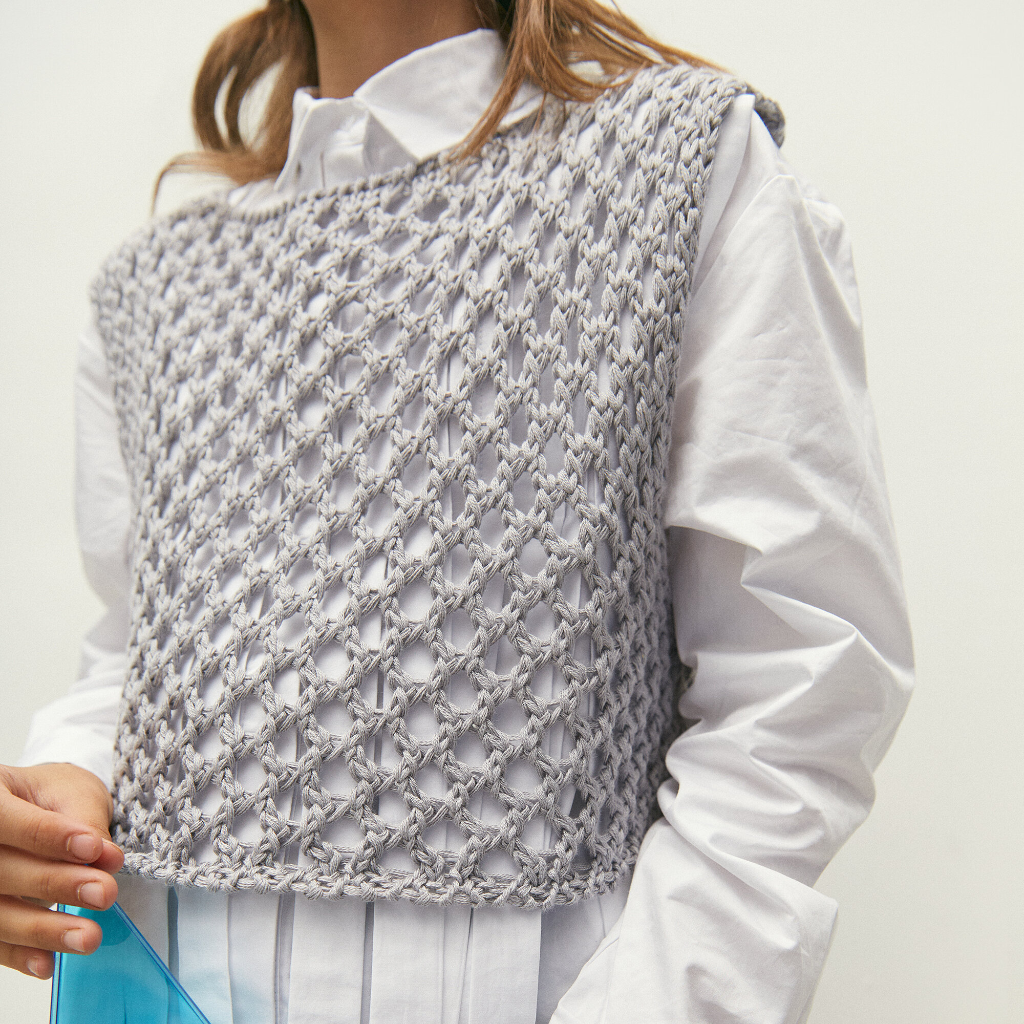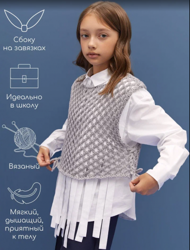 СохранитьЖилет вязаный сетка детский Amarobaby MESH, цвет серый, размер 146 интересное: