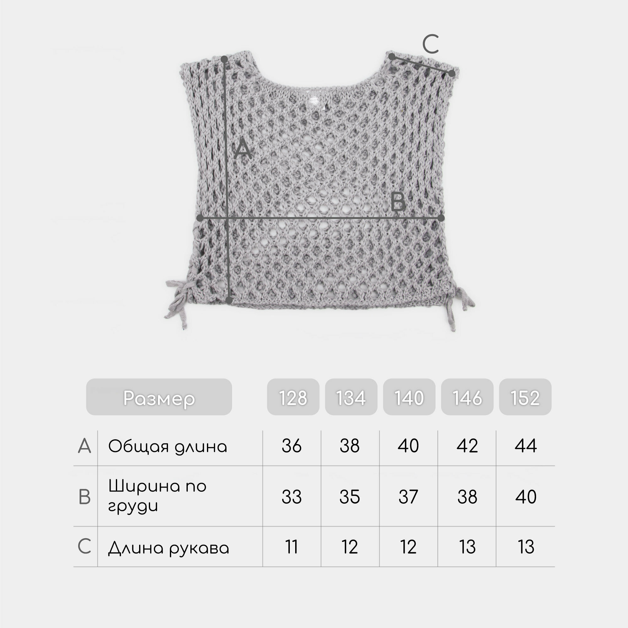 Жилет вязаный сетка детский Amarobaby MESH, цвет серый, размер 134