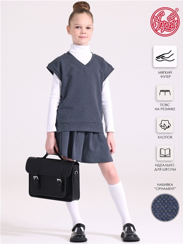 Костюм школьный трикотажный юбка и жилет футер Апрель 2ДЖЮ5707258н/989/*/5310/*/*/*/* 64-128