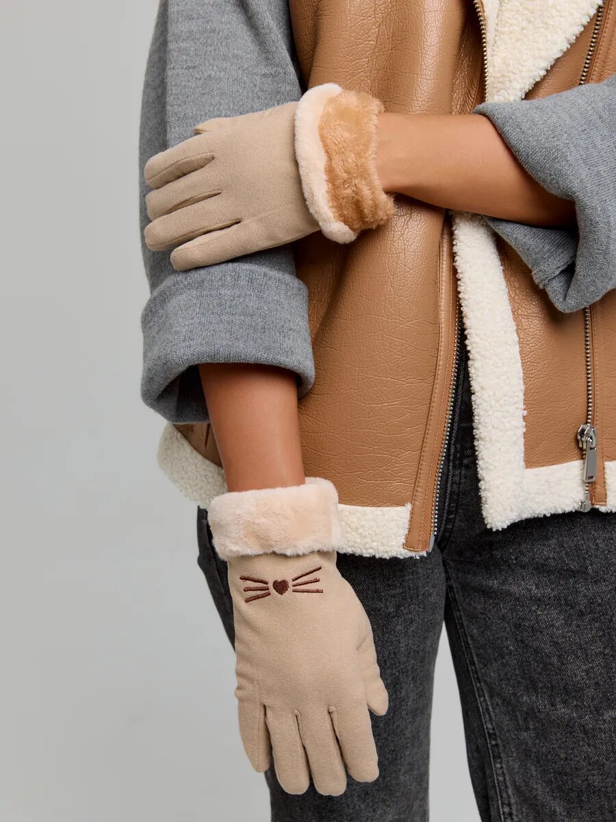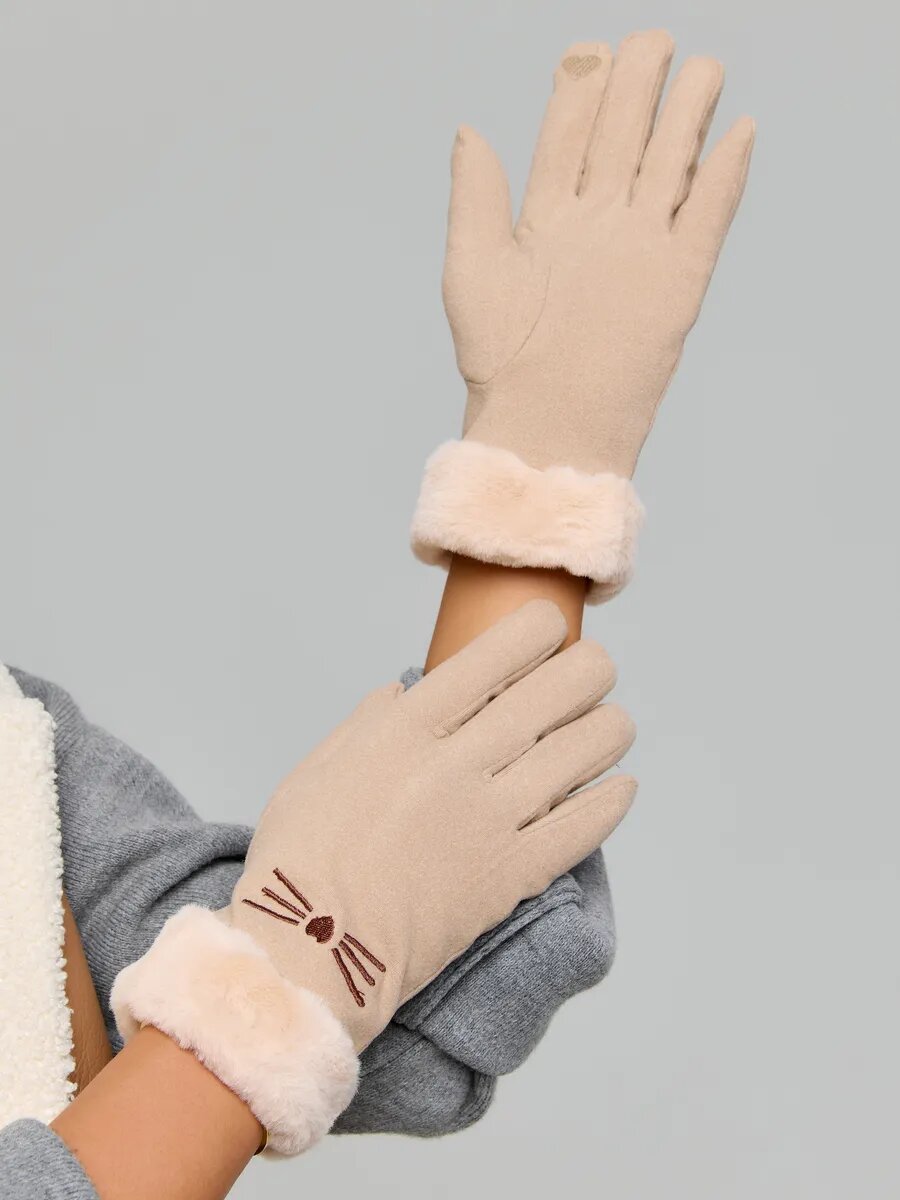 Перчатки женские утепленные сенсорные, бежевый интересное:
