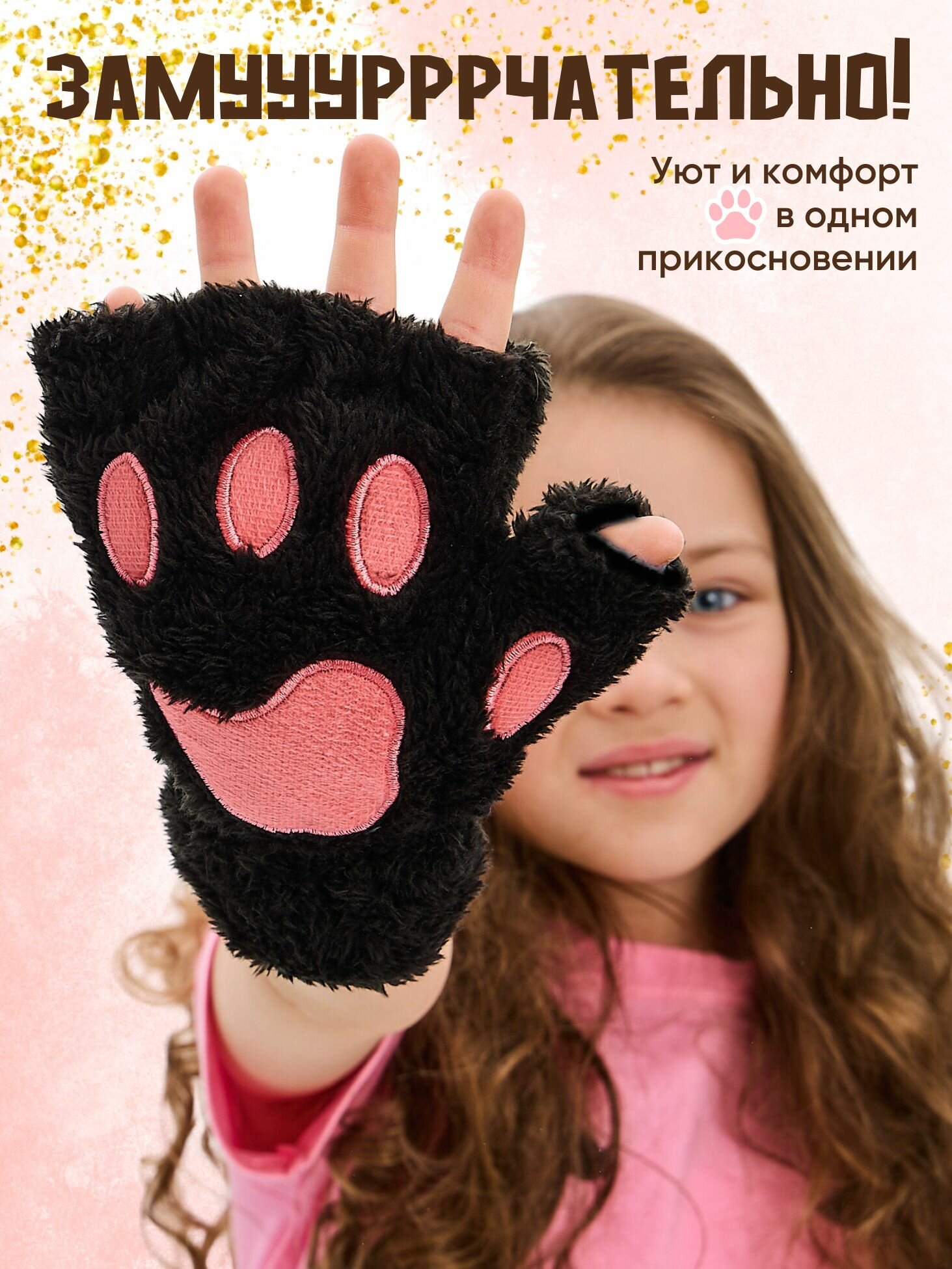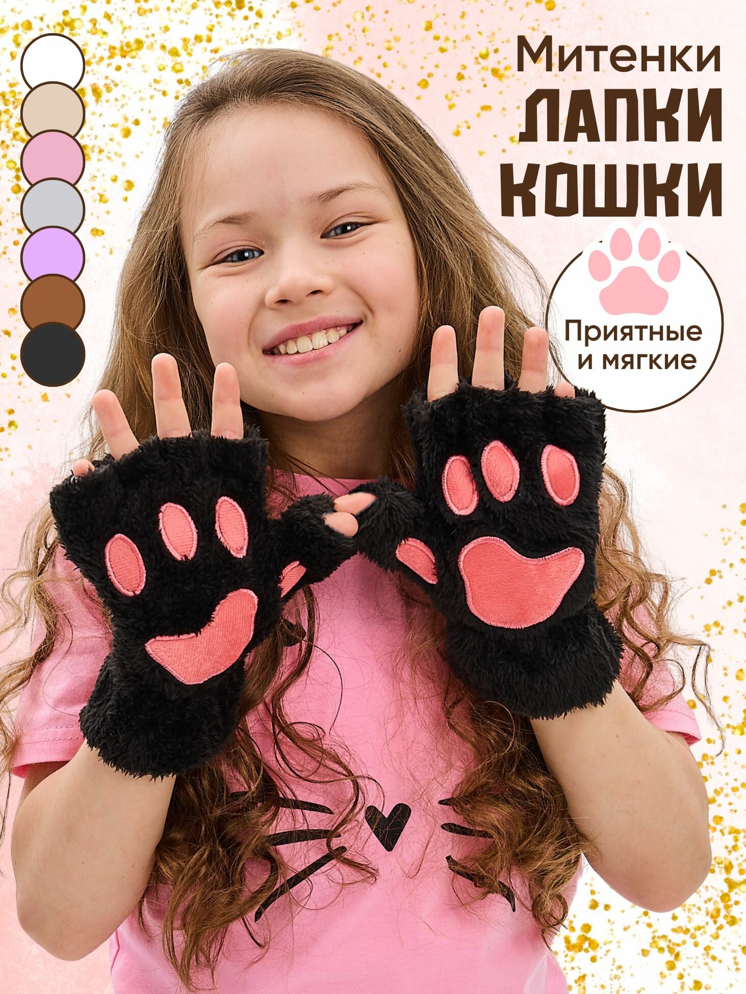 Перчатки детские без пальцев, митенки для девочек кошачьи интересное: