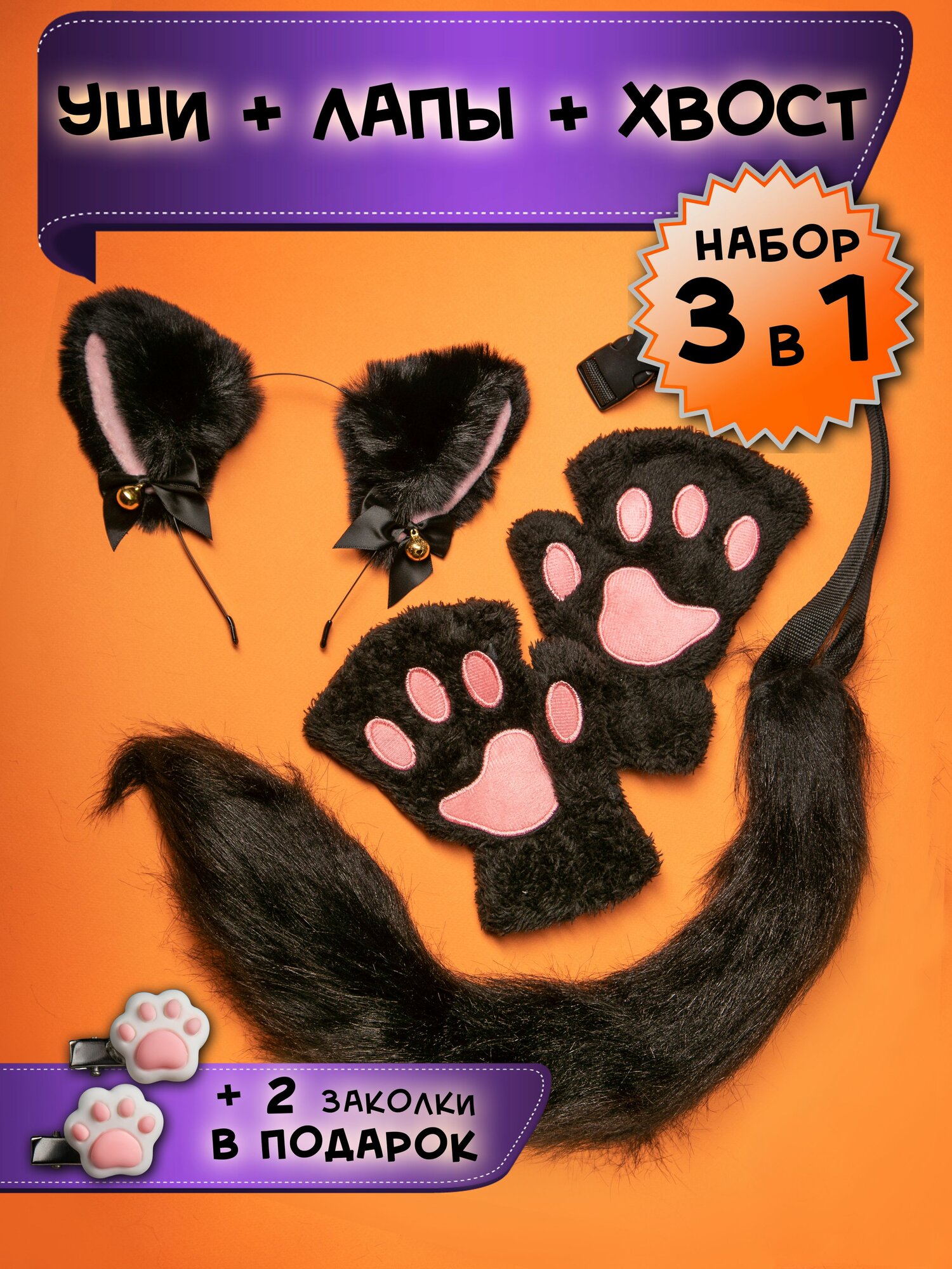 Купить Перчатки детские без пальцев для девочек, ободок с ушками кошки, хвост для квадробики
