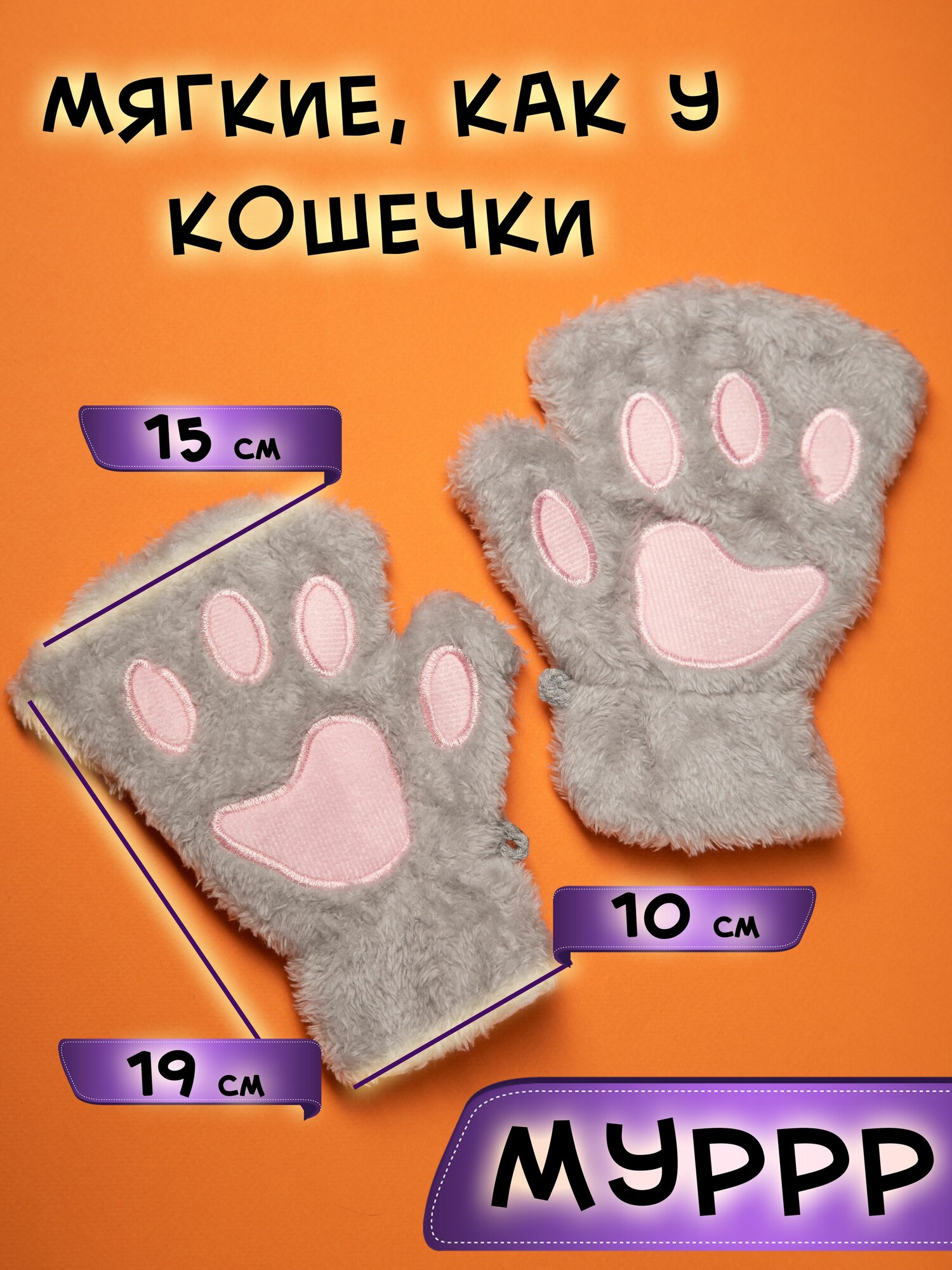 Перчатки детские без пальцев, митенки для девочек кошачьи