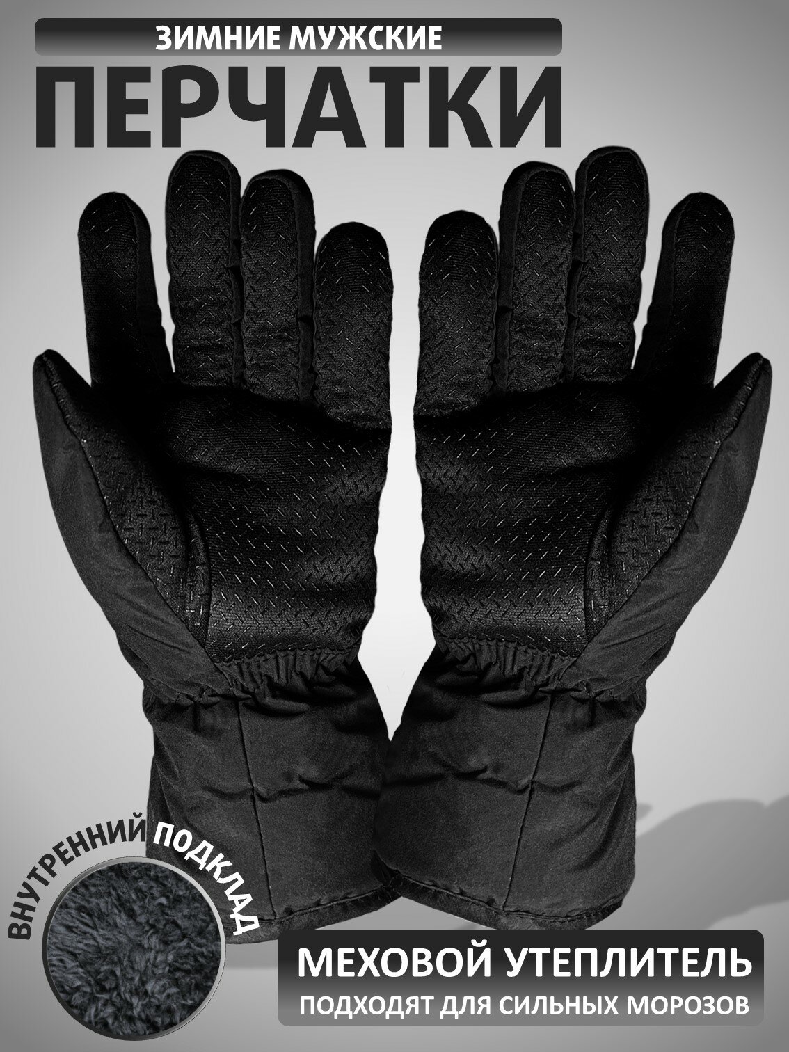 Зимние мужские перчатки с сенсорным пальцем / Утепленные непромокаемые перчатки на флисе для мужчин, парней и подростков / термо-перчатки цвет черный