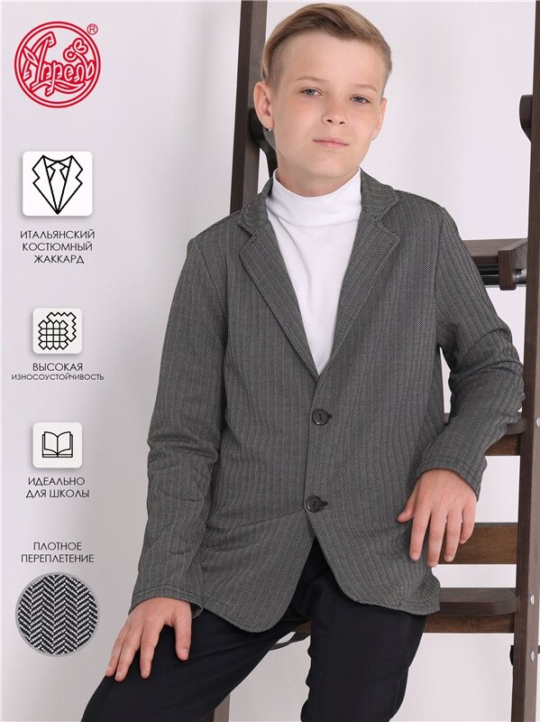 Купить Пиджак для мальчика школьный трикотажный Апрель 1ПДИД4483176/982/*/3189/*/*/*/* черный,серый 84-158