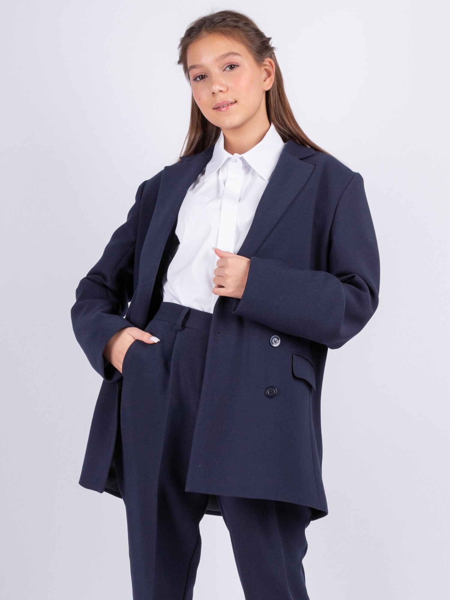Пиджак школьный синий классический для девочки для подростка KAYSAROW Медея рост 170