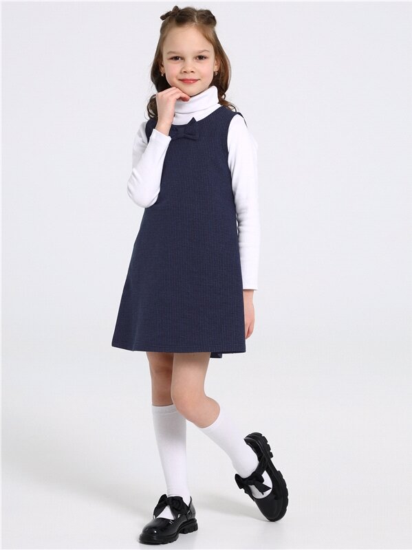 Сарафан школьный для девочки синий трикотажный хлопок Апрель 1ДПС1962258н/989/*/5082/*/*/*/* синий 68-134