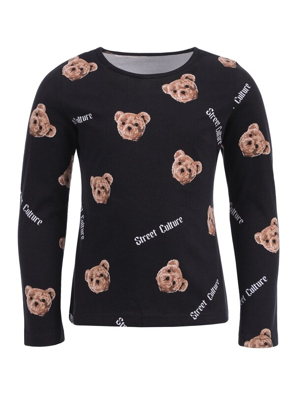 Лонгслив для девочки с принтом кофта хлопок 100% Апрель 1ДДЛД2313001н/1119/*/5217/*/*/*/* черный,коричневый 64-128