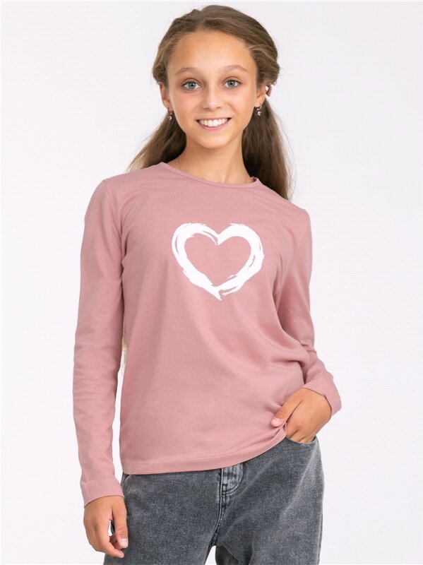 Лонгслив для девочки с принтом кофта хлопок 100% Апрель 1ДДЛД2313001н/ розовый,серый 134-68