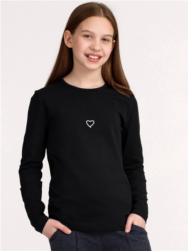Лонгслив для девочки с принтом Апрель 1ДДЛД3569001/1119/599/*/3407/*/*/* черный 72-140