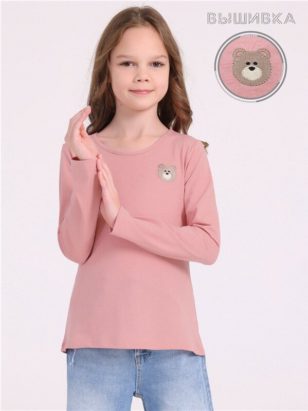 Лонгслив для девочки с вышивкой кофта хлопок 100% Апрель 1ДДЛД3569001/1119/2408/*/406/*/*/* розовый,коричневый 76-146