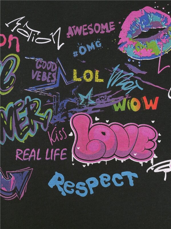 Лонгслив с тату-рукавами для девочки Апрель 1ДДЛД4025804н/1436/*/4930/*/*/*/* черный 76-146