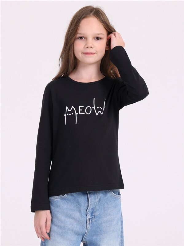 Лонгслив для девочки с принтом кофта хлопок 100% Апрель 1ДДЛД4414001н/1119/*/5217/*/*/*/* черный,коричневый 84-158