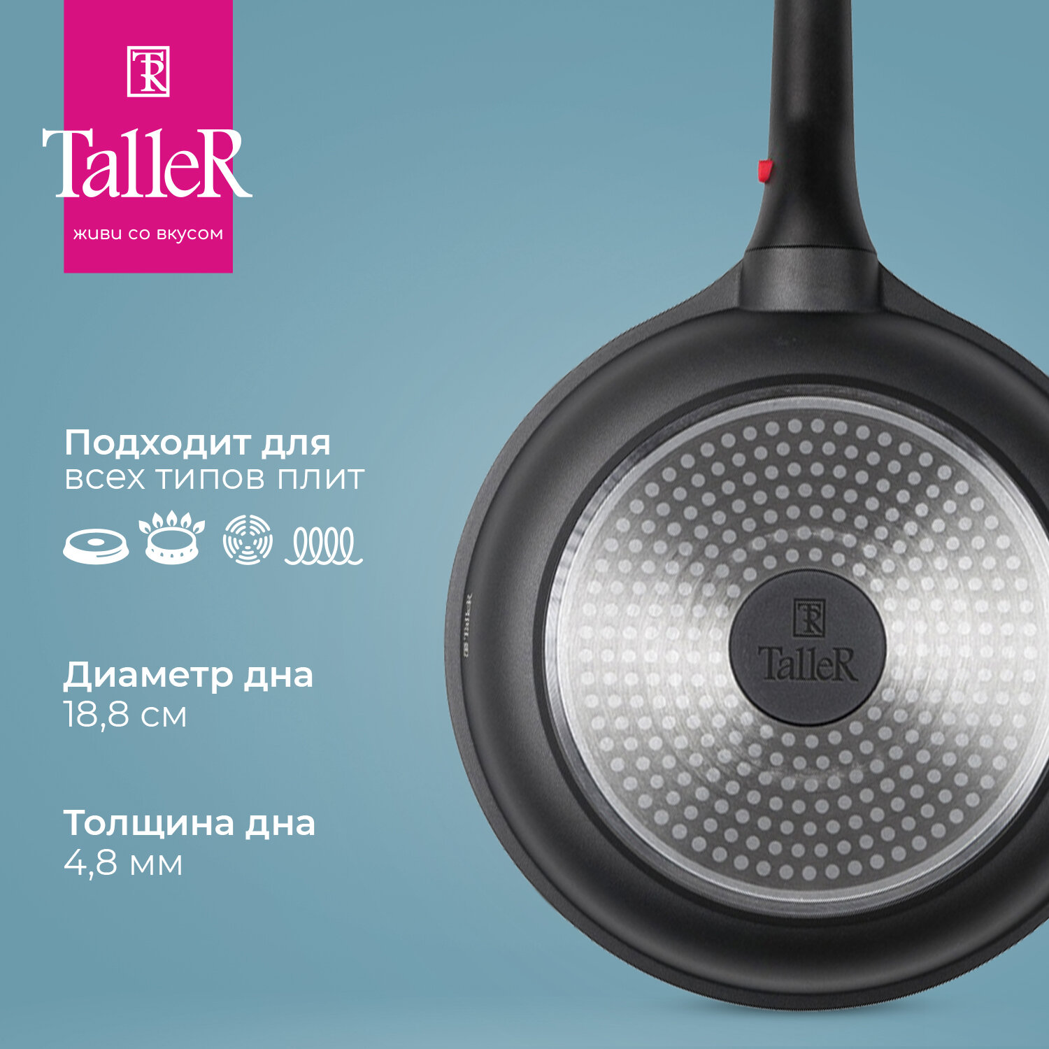 Сковорода TalleR TR-44021, 22 см, толщина дна 4,8 мм, внешний диаметр дна 14,5 см