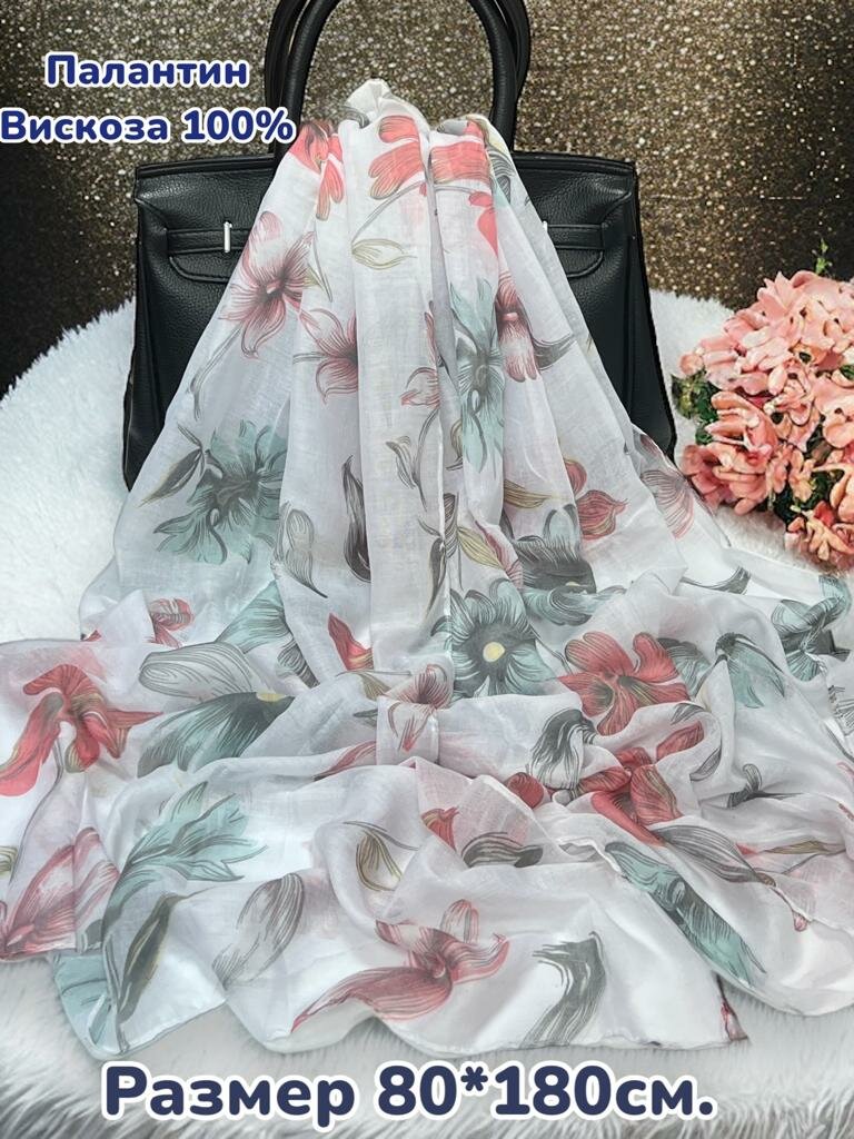 Палантин Goldengala /Вискозный хлопок 100%/ Большой размер 70*180 см./Лилии 8