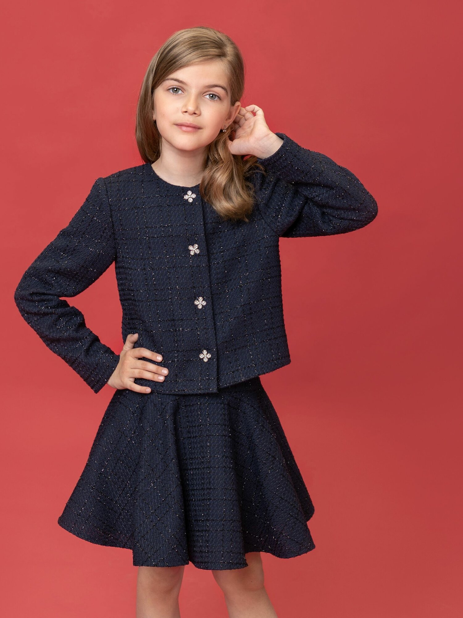 Купить Юбка-солнце из твида 7245018 Синий, размер 140
