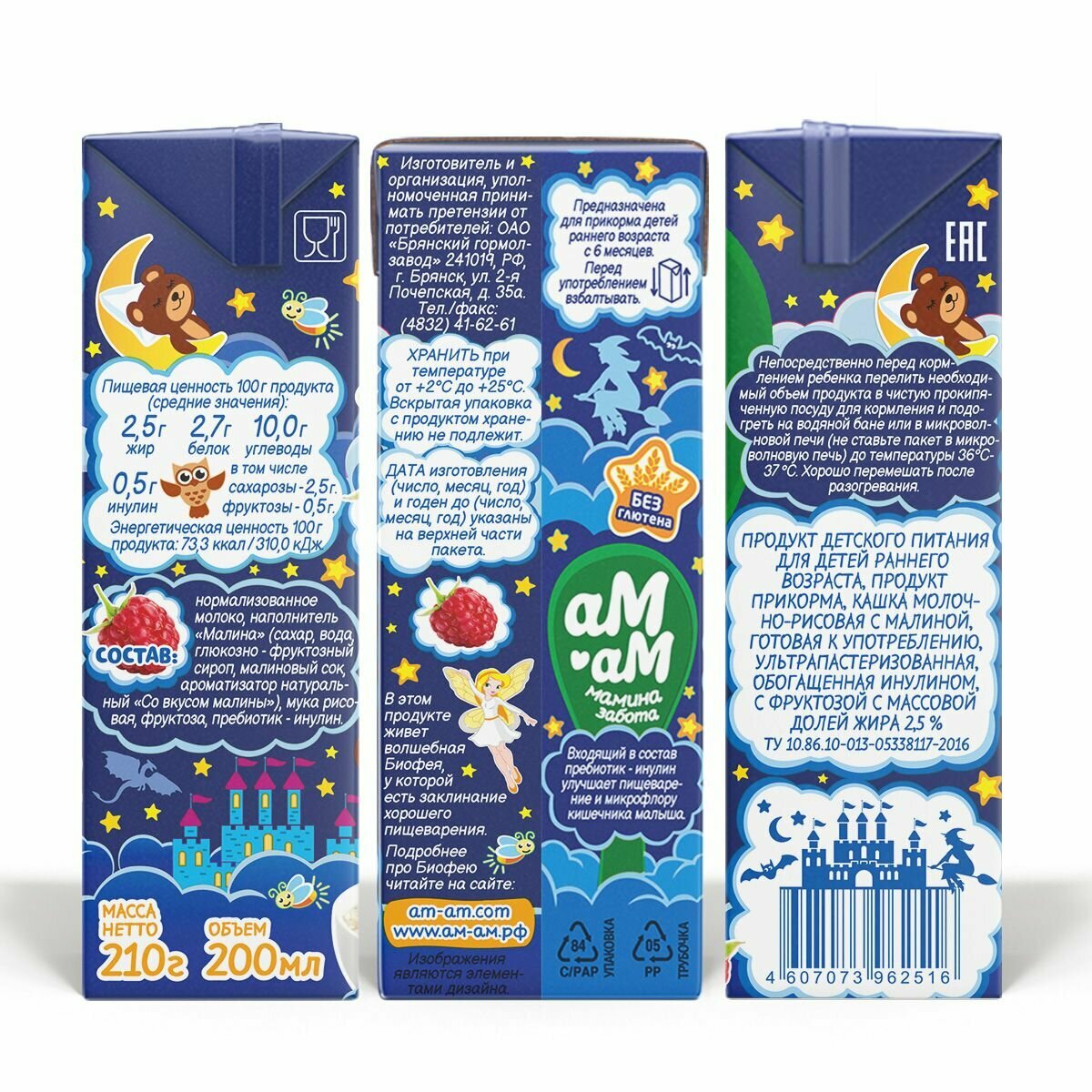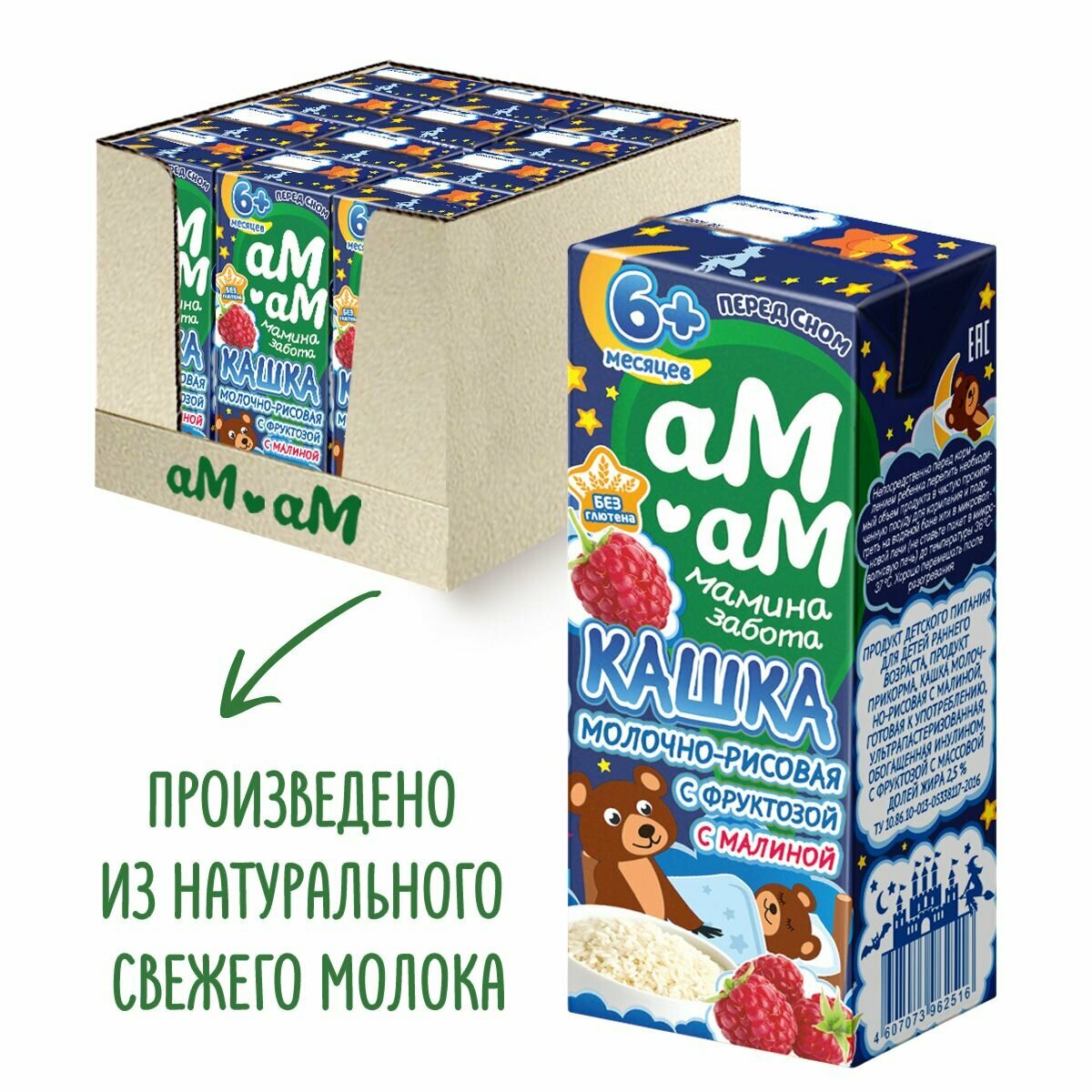 Ам-Ам кашка молочно-рисовая с малиной м.д.ж 2,5% интересное: