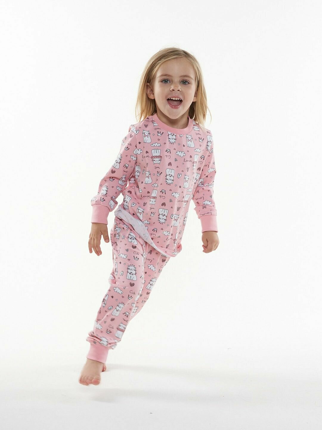 Пижама Happyfox Для девочек, размер 104, сердечки на розовом