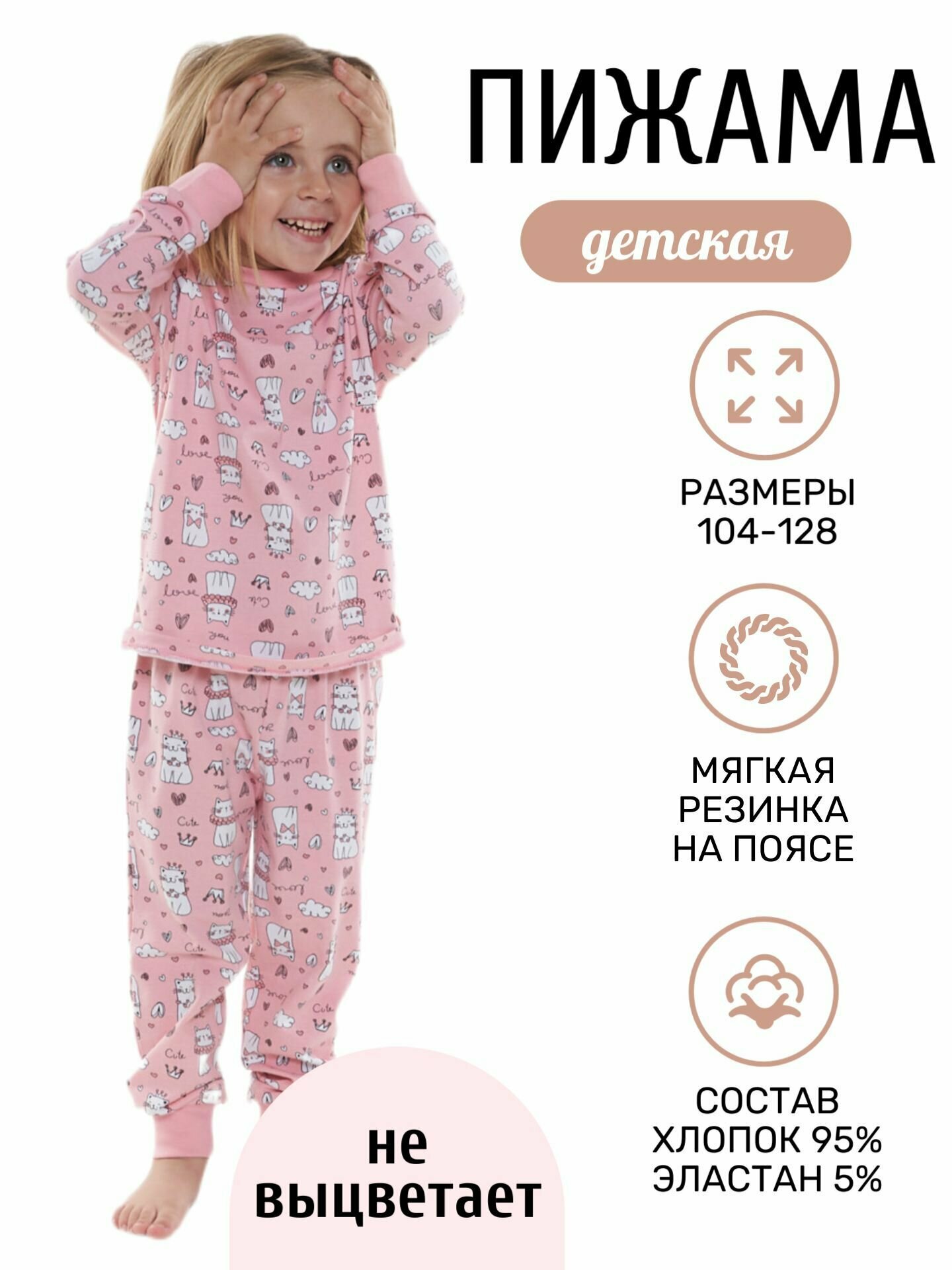 Пижама детская для девочки и мальчика со штанами, 122-128
