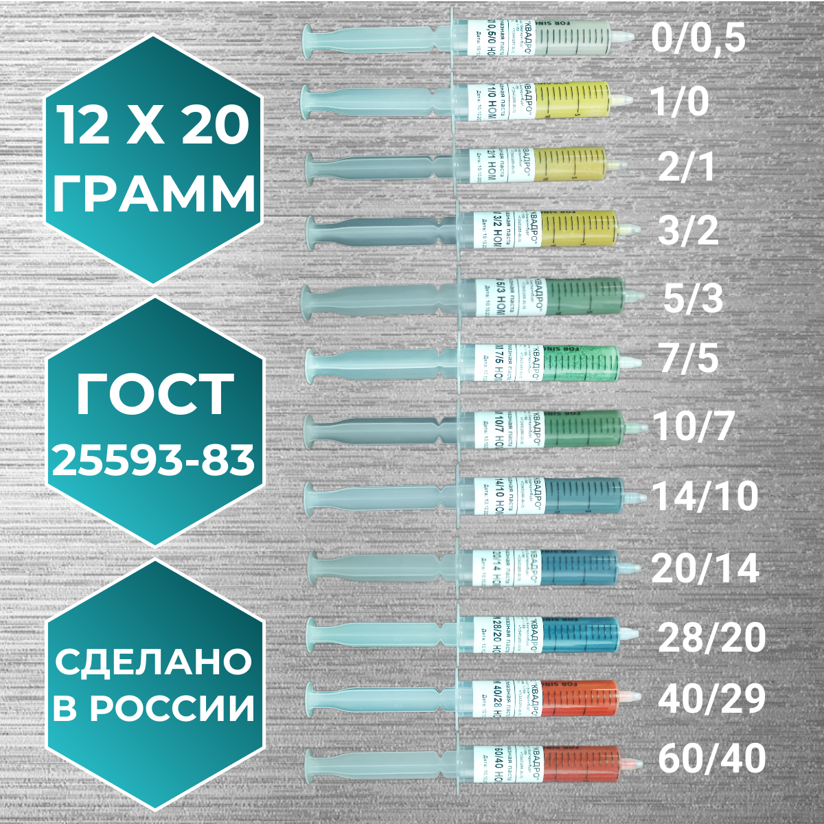 Набор паст алмазных НОМ в шприцах квадро макси 12х20 гр интересное: