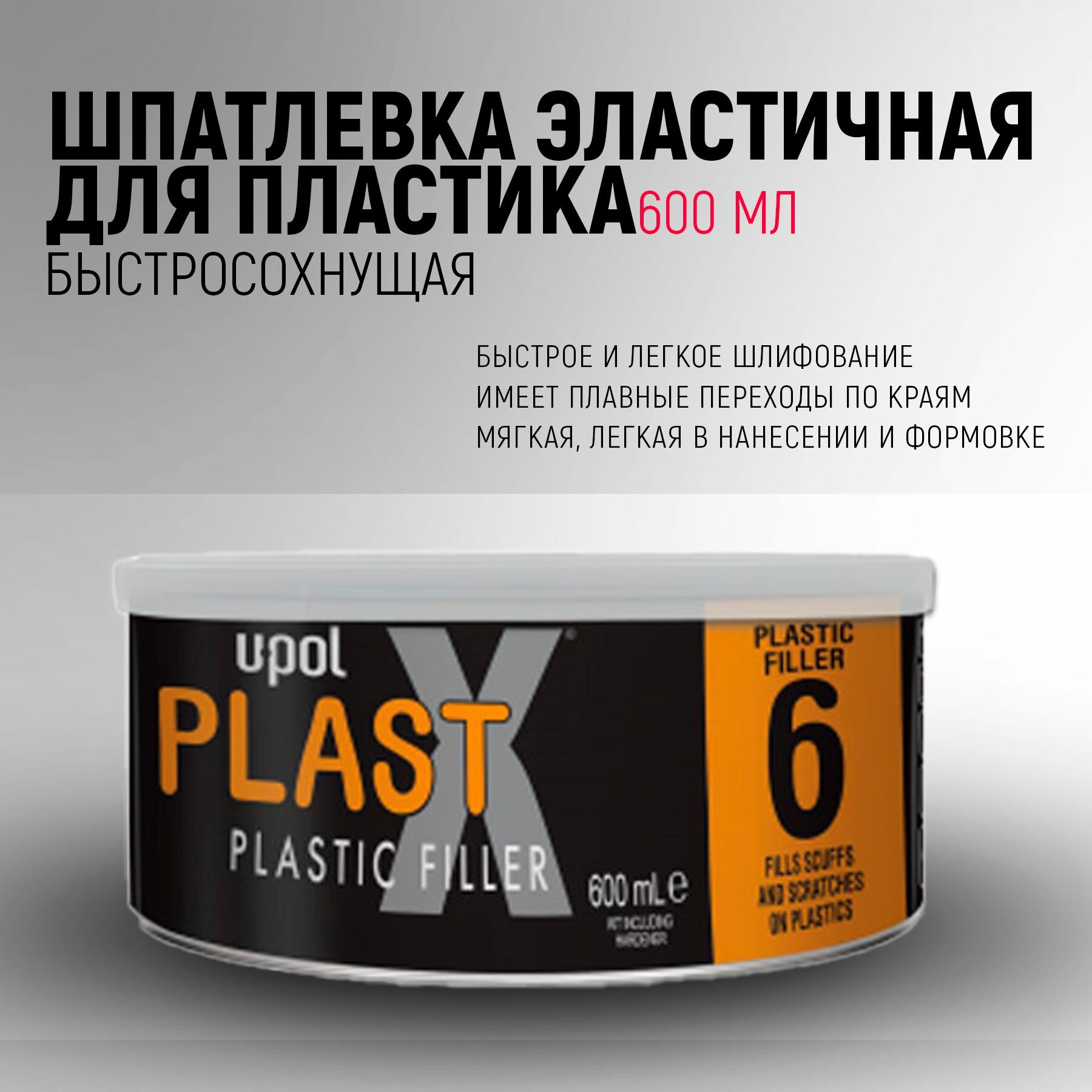 Купить Шпатлевка для пластиков U-POL PLAST-X #6, эластичная, быстросохнущая, черный, банка, 600 мл