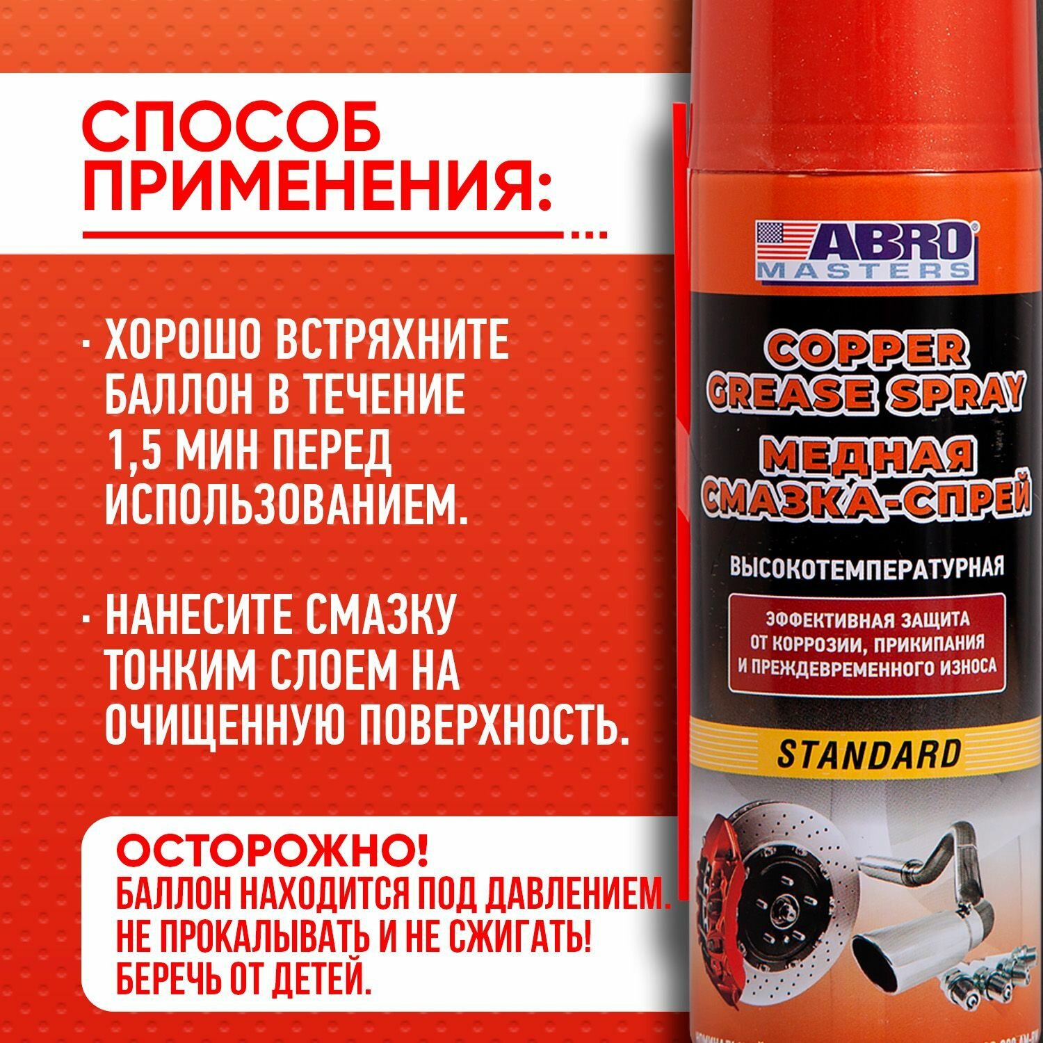 Смазка-спрей медная высокотемпературная 200 мл ABRO MASTERS интересное: