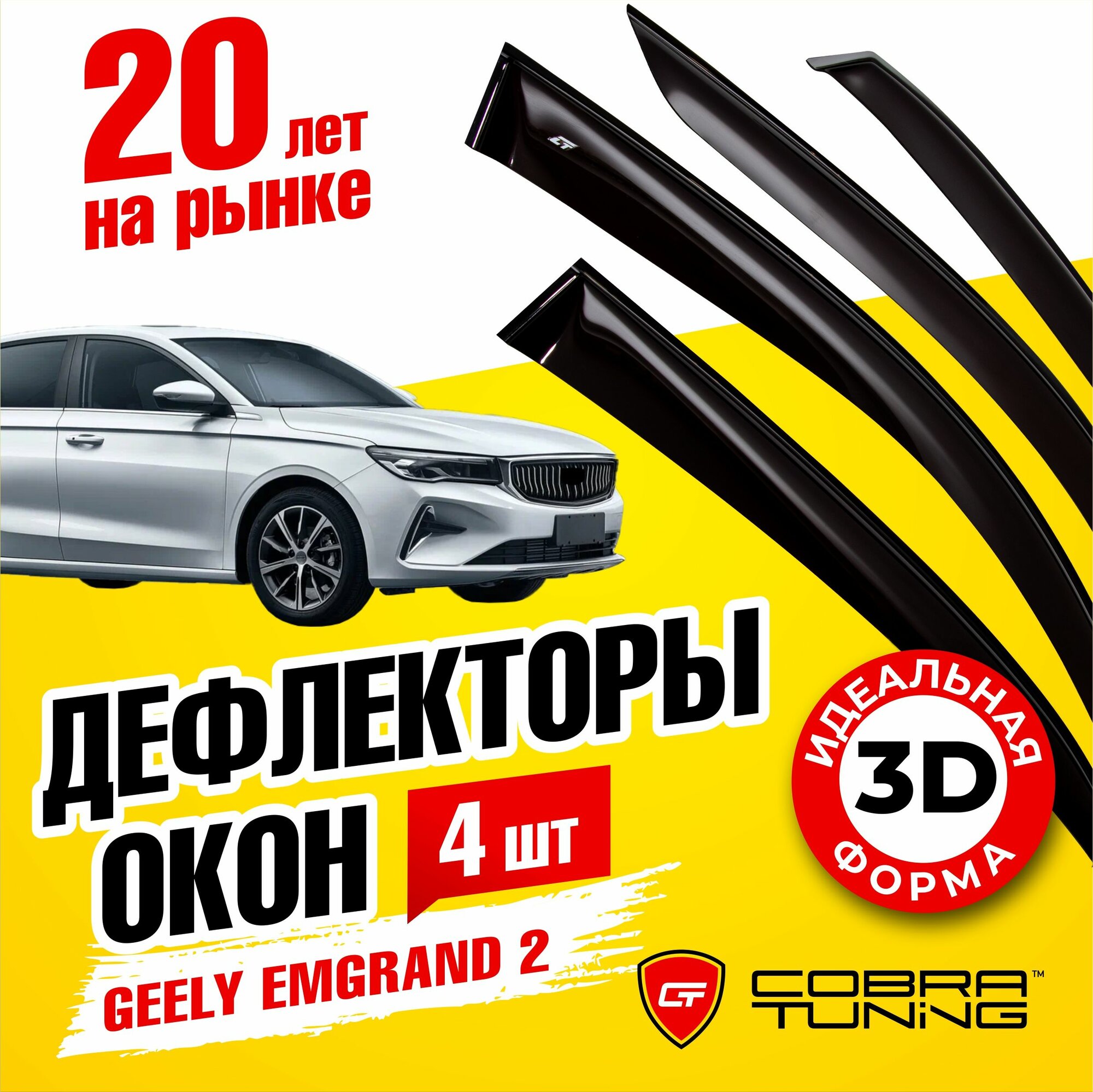 Дефлекторы боковых окон для Geely Emgrand 2 (Джили Эмгранд) седан 2021-2024, ветровики на двери автомобиля, Cobra Tuning.
