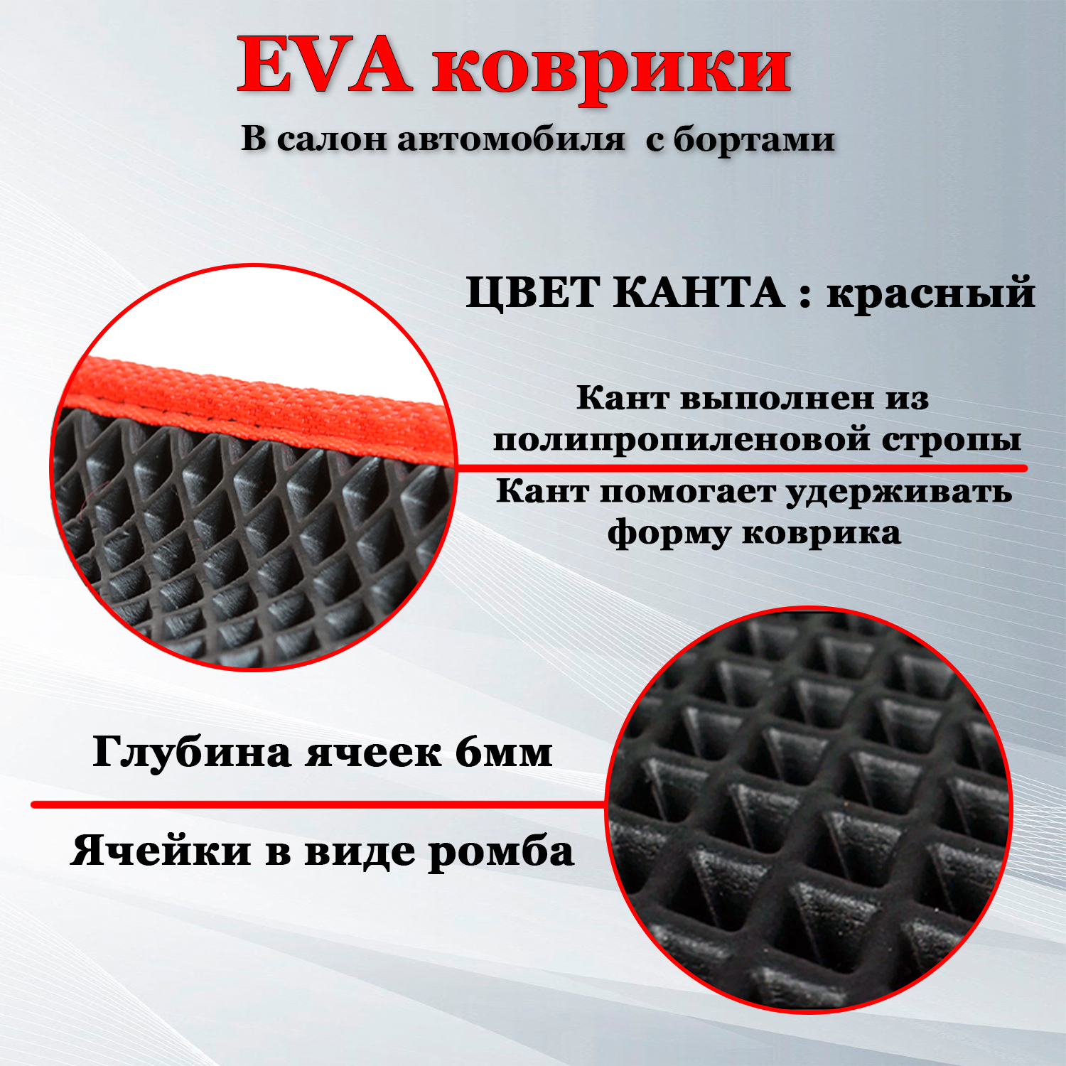 Автомобильные коврики EVA (EВА, ЭВА) с бортами в салон автомобиля Хендай Солярис 1 / Hyundai Solaris 1 (2010-2016) черный/красный кант интересное:
