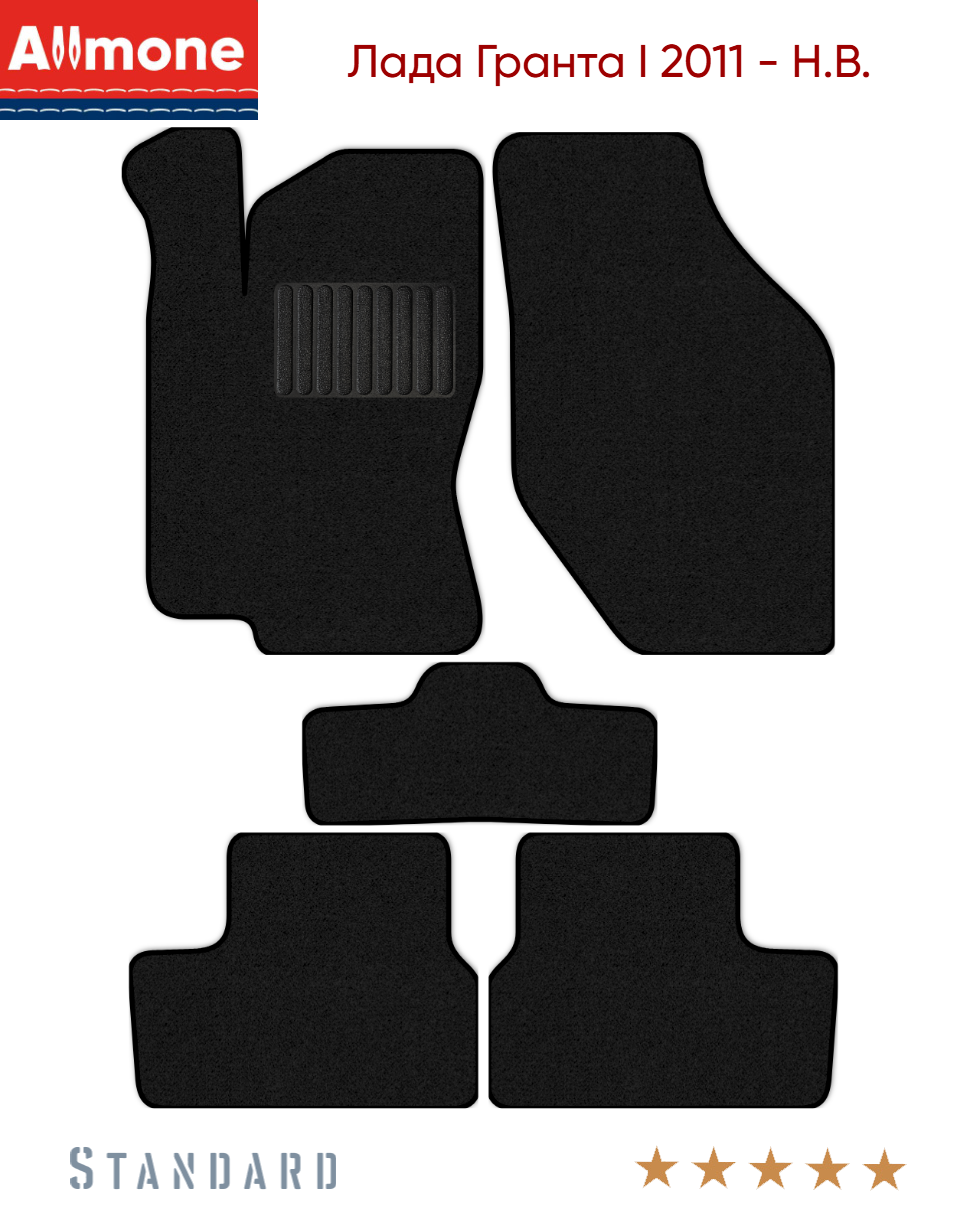 Купить Коврики в салон текстильные Allmone "Стандарт" для Лада Гранта 1 2011 - Н.В., черные, 5шт. / Lada Granta 1