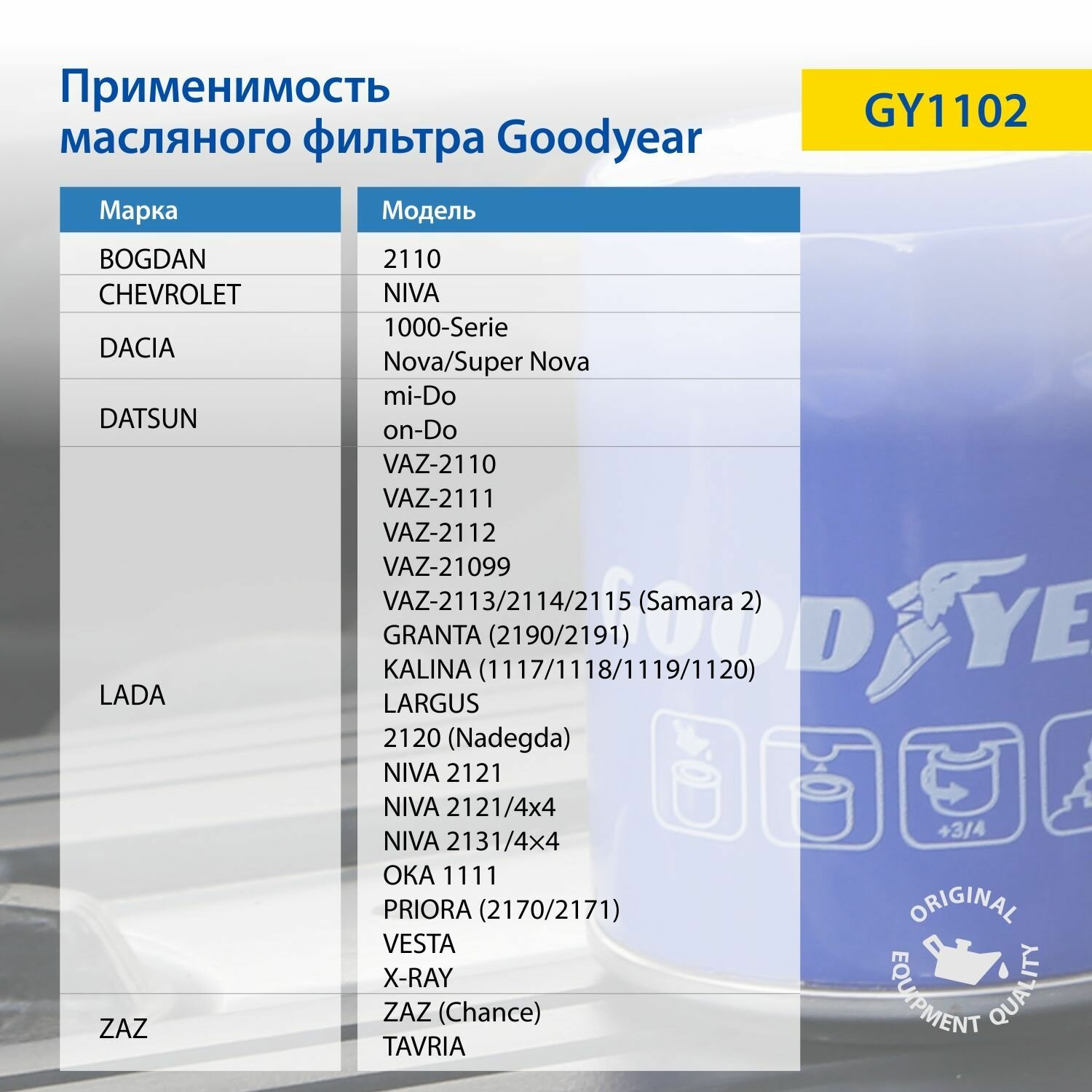 Фильтр масляный автомобильный Goodyear GY1102 для LADA; CHEVROLET; Niva интересное:
