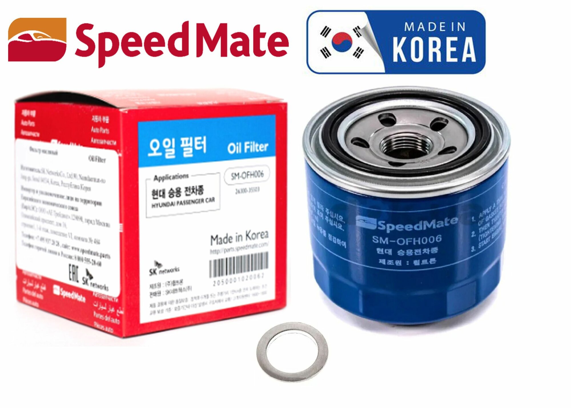 Фильтр масляный+прокладка сливной пробки Speedmate (Корея) SMOFH006 (26300-35505/26300-35503/21513-23001) Фильтр масляный Hyundai ix35; Sportage; Солярис; Рио; Сид; Крета; Гетц; Акцент интересное: