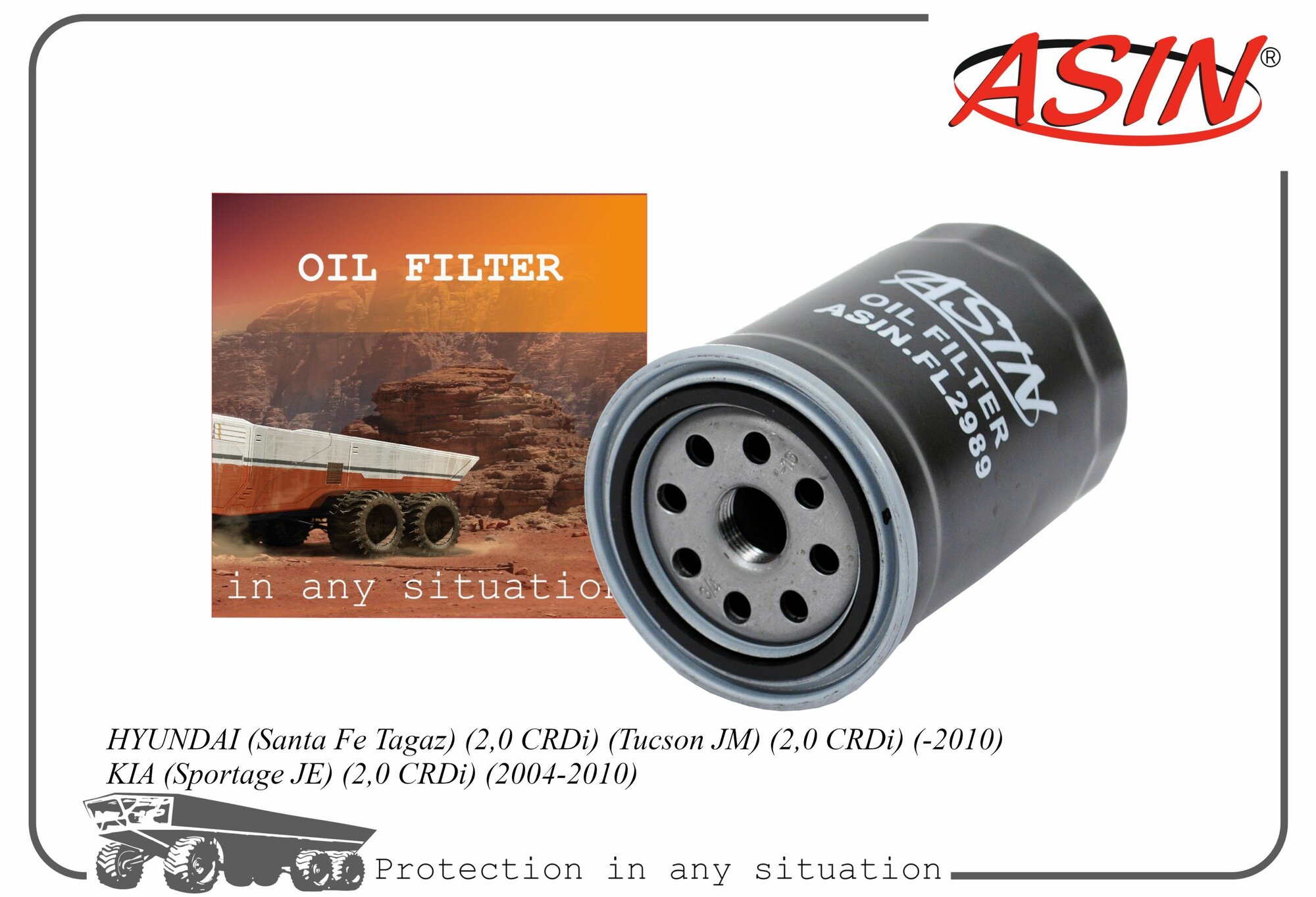 Фильтр масляный 26310-27200 ASIN.FL2989 для HYUNDAI Santa Fe Tagaz 2,0 CRDi Tucson JM 2,0 CRDi -2010 KIA Sportage JE 2,0 CRDi 2004-2010 интересное: