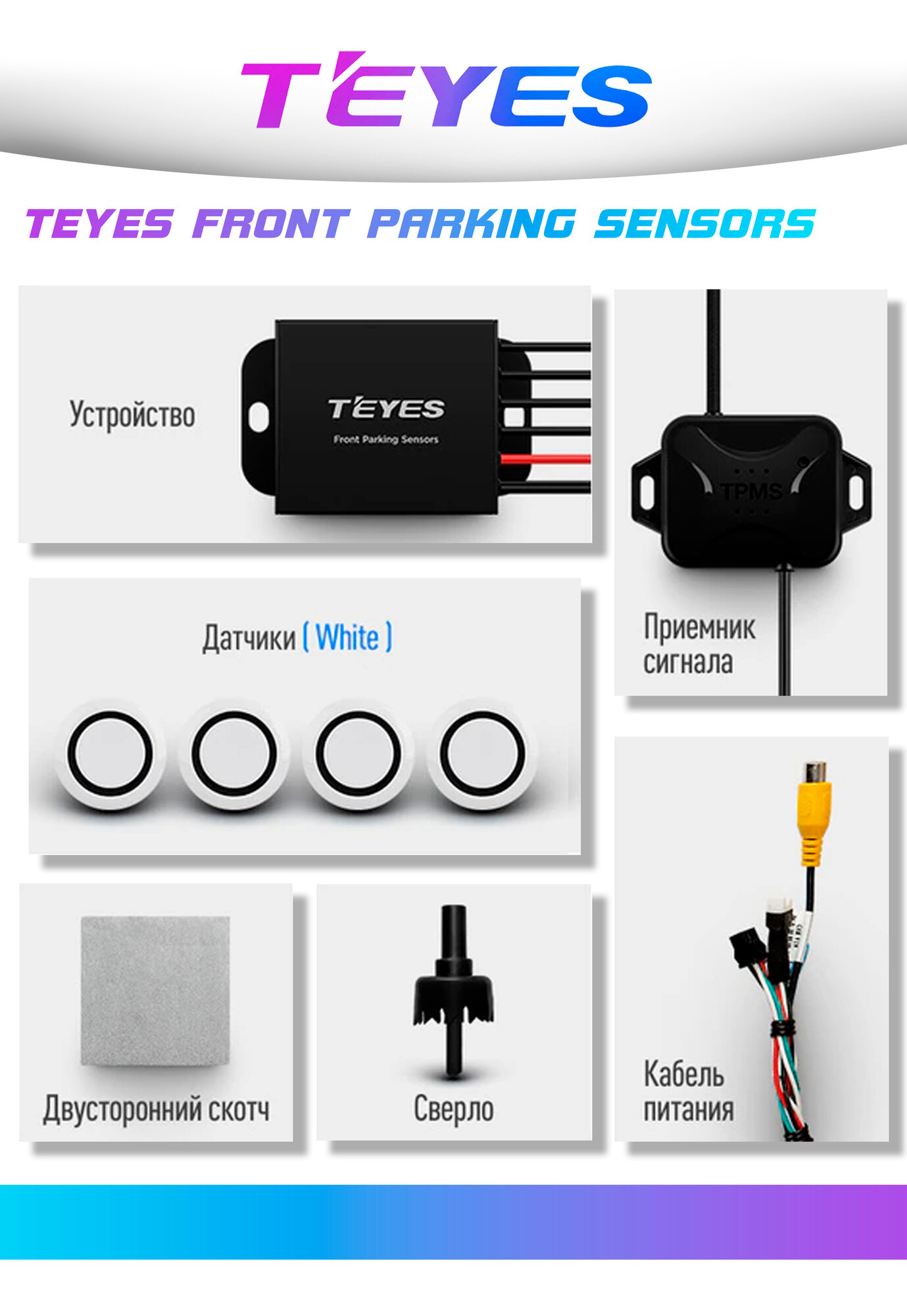 Купить TEYES R2 Передние и задние автомобильные парктроники. Цвет белый.