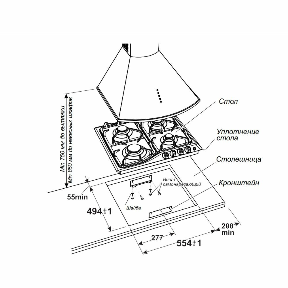| Ширина для встраивания | 55 см |