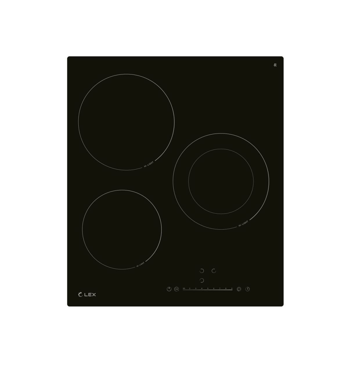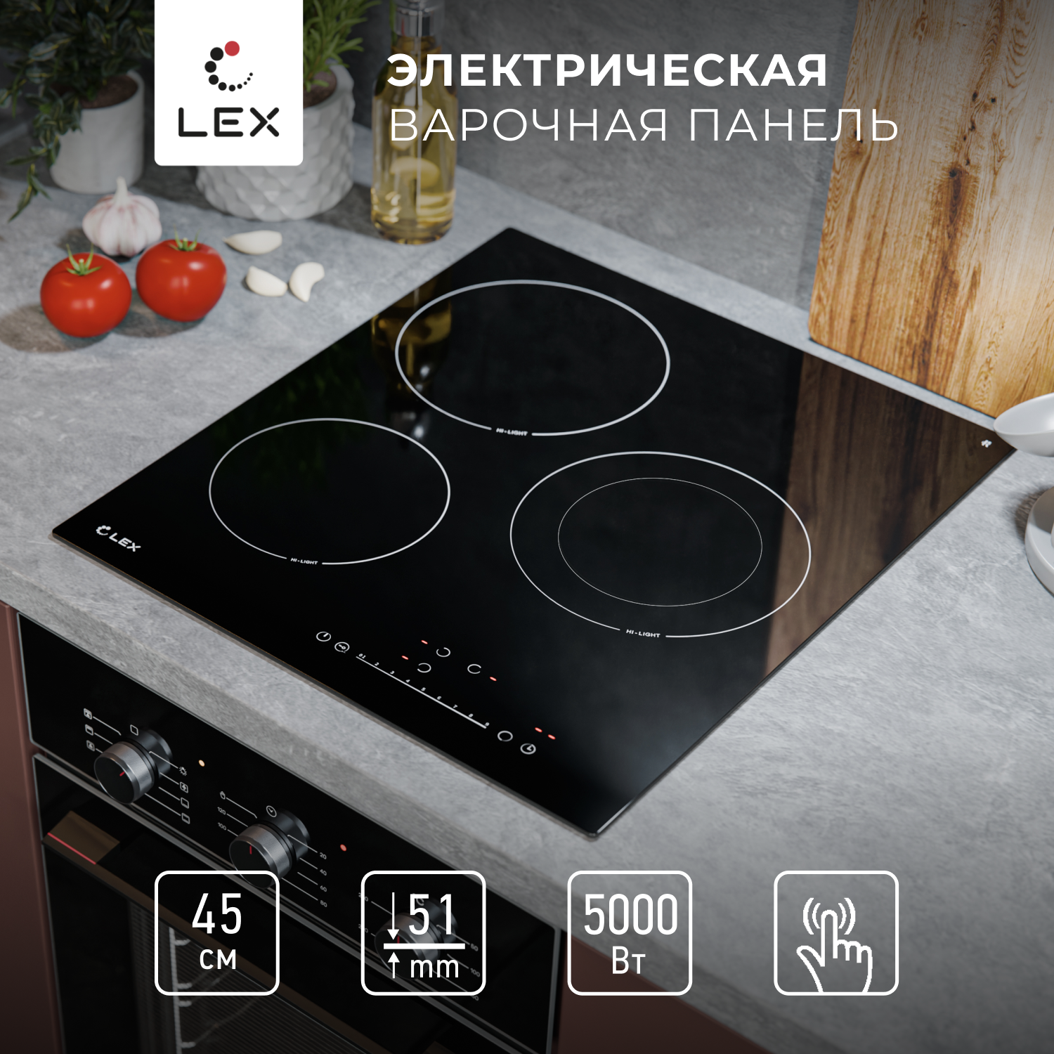 Варочная панель электрическая LEX EVH 431A BL, 45см, встраиваемая, защита от перегрева, индикатор остаточного тепла, кнопка блокировки панели, отключение при выкипании. интересное: