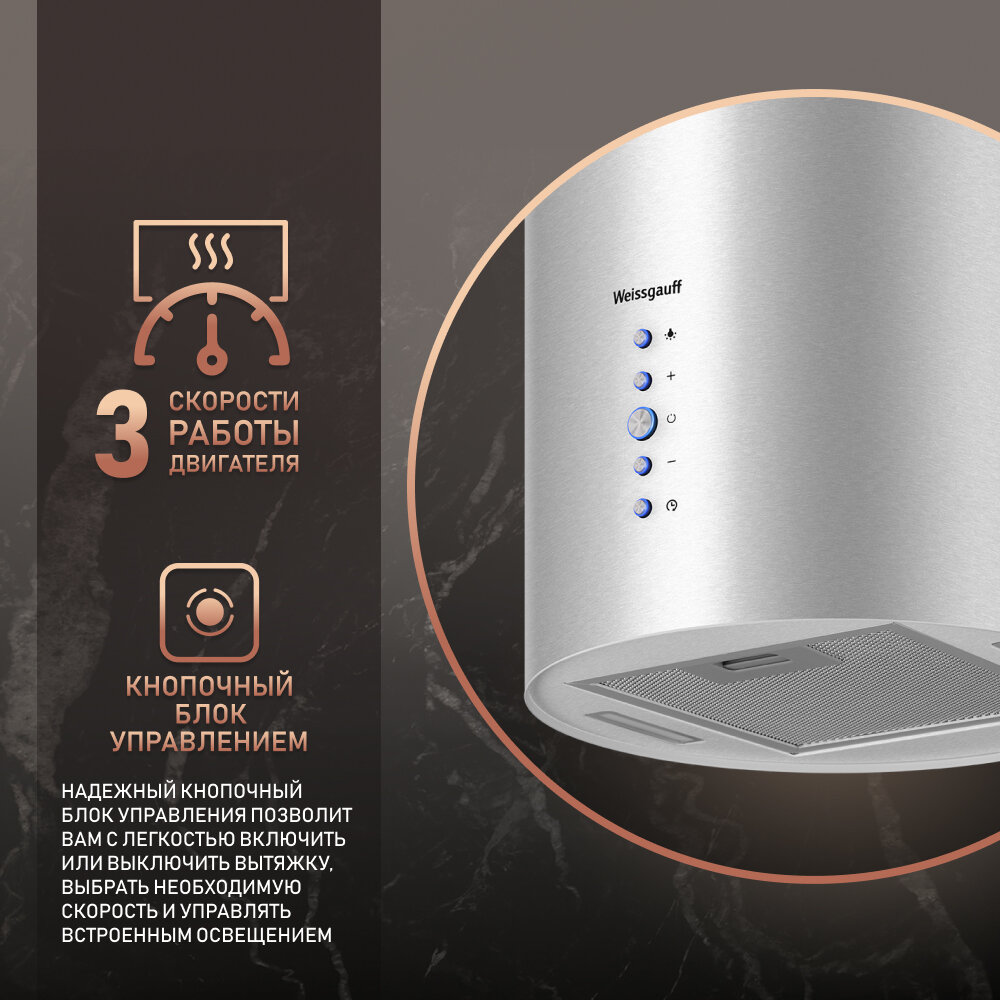 Купить Вытяжка цилиндрическая пристенная Weissgauff Gracia IX 3 года гарантии, Алюминиевый жировой фильтр, Низкий уровень шума