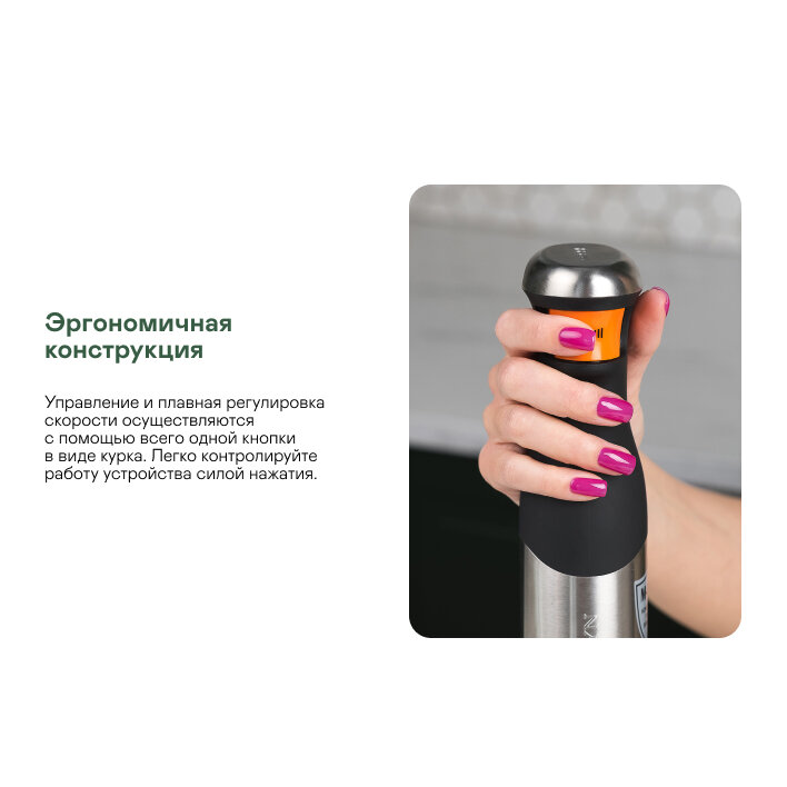 | Насадки | венчик для взбивания / диск для нарезки ломтиками / для нарезки кубиками / для приготовления пюре / измельчитель / насадка для шинковки / терка |