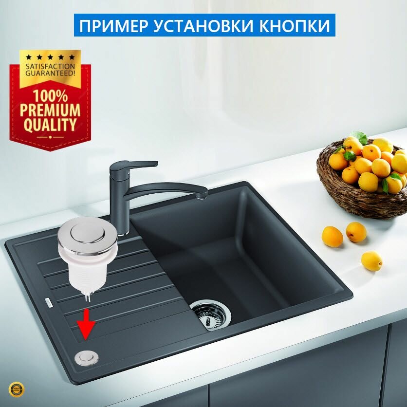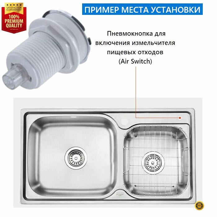 Кнопка пуска измельчителя отходов In-Sink-Erator, полный комплект - кнопка, шланг, пускатель Air switch, цвет белый панель хром глянцевый интересное: