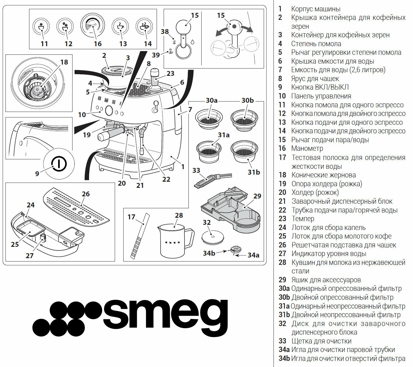 Кофеварка SMEG EGF03CREU, кремовая интересное: