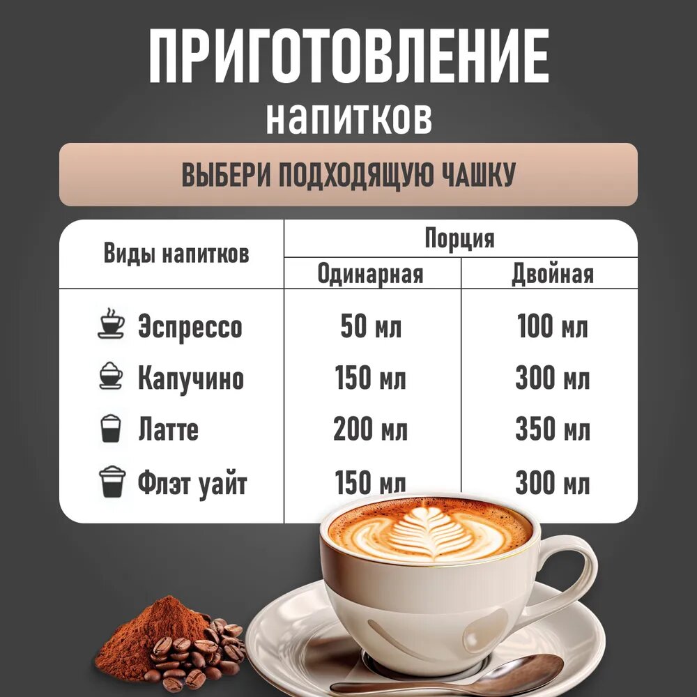 | Тип напитка | капучино / латте / флэт уайт / эспрессо |