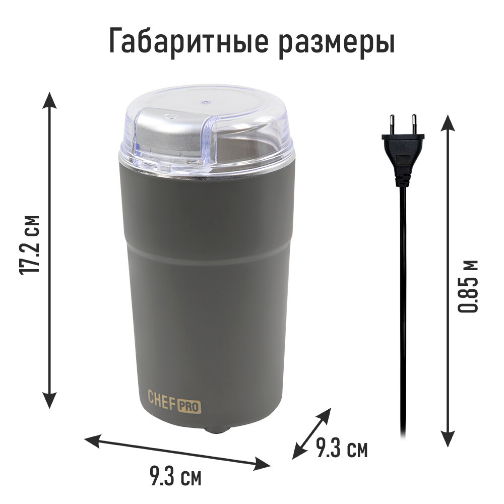 Кофемолка CHEF PRO CF-CG1400A серый интересное: