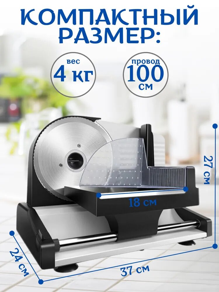 Ломтерезка, ломтерезка электрическая, слайсер для нарезки, 1 скорость работы, 150Вт, регулировка толщены нарезки